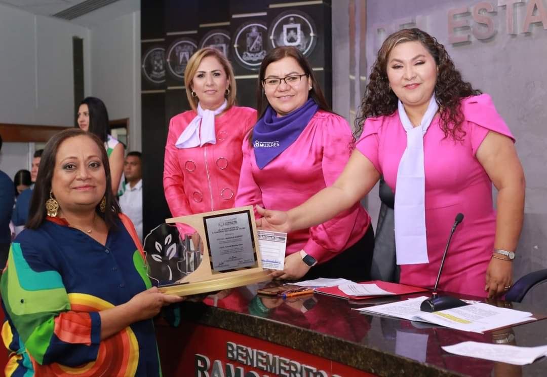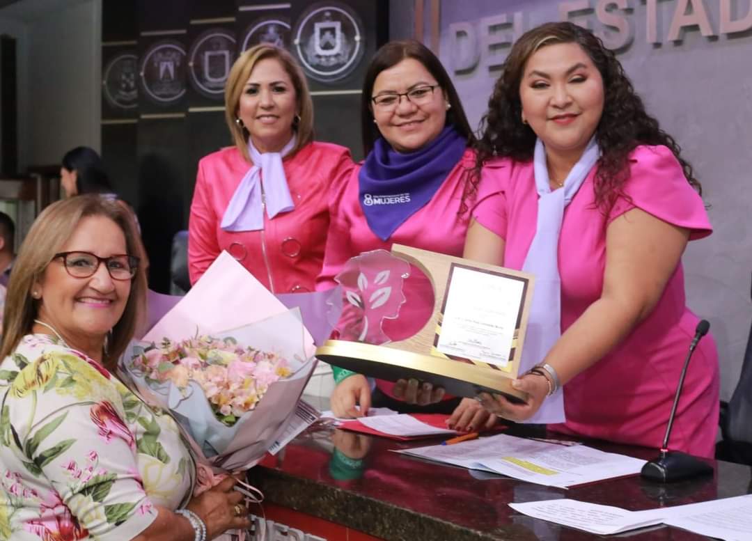 A continuación, se hizo entrega de la Presea “Susana Ortiz Silva”, a la C. María de los Ángeles Rivera Osuna, por su destacada participación como Presidenta y fundadora de la Asociación Civil “Caminemos Juntos con Amor, Luz y Esperanza y bajo su liderazgo ha contribuido al apoyo para mejorar la calidad de vida de personas con enfermedades terminales o alguna discapacidad.