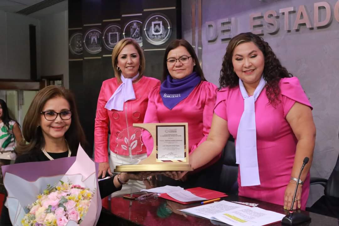 Posteriormente, se hizo entrega de la Presea “Martha Dueñas González”, a la C. Margarita Ochoa Vargas, por su destacado trabajo en el servicio público por 11 años en la Secretaría de Educación del Estado de Colima, así como su alta trayectoria en el Instituto Superior de Educación Normal del Estado de Colima “Profesor Gregorio Torres Quintero” habiendo ostentado diversos cargos en el mismo.