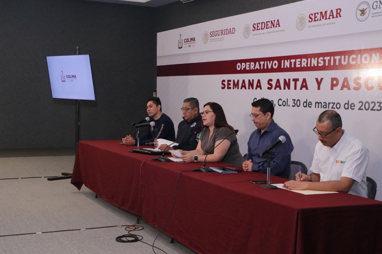 A través de la Mesa de Coordinación Estatal para la Construcción de la Paz y la Seguridad en Colima, se dio a conocer en rueda de prensa este jueves, el Operativo Inter-institucional de Semana Santa y Pascua 2023, donde la secretaria general de Gobierno, Ma. Guadalupe Solís Ramírez, expresó que los objetivos principales son: tener saldo blanco, y que turistas sean atendidos y acompañados en cualquier necesidad; “es prioridad que no tengamos pérdida de vidas de la gente que aprovecha estos días para vacacionar”.