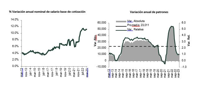 Al 31 de marzo de 2023 se tienen registrados ante el Instituto 1,069,067 (un millón sesenta y nueve mil sesenta y siete) patrones, que en su comparación anual representa una tasa de 1.1% (uno punto uno por ciento). Con este registro, la variación mensual en marzo es de 2,729 (dos mil setecientos veintinueve)