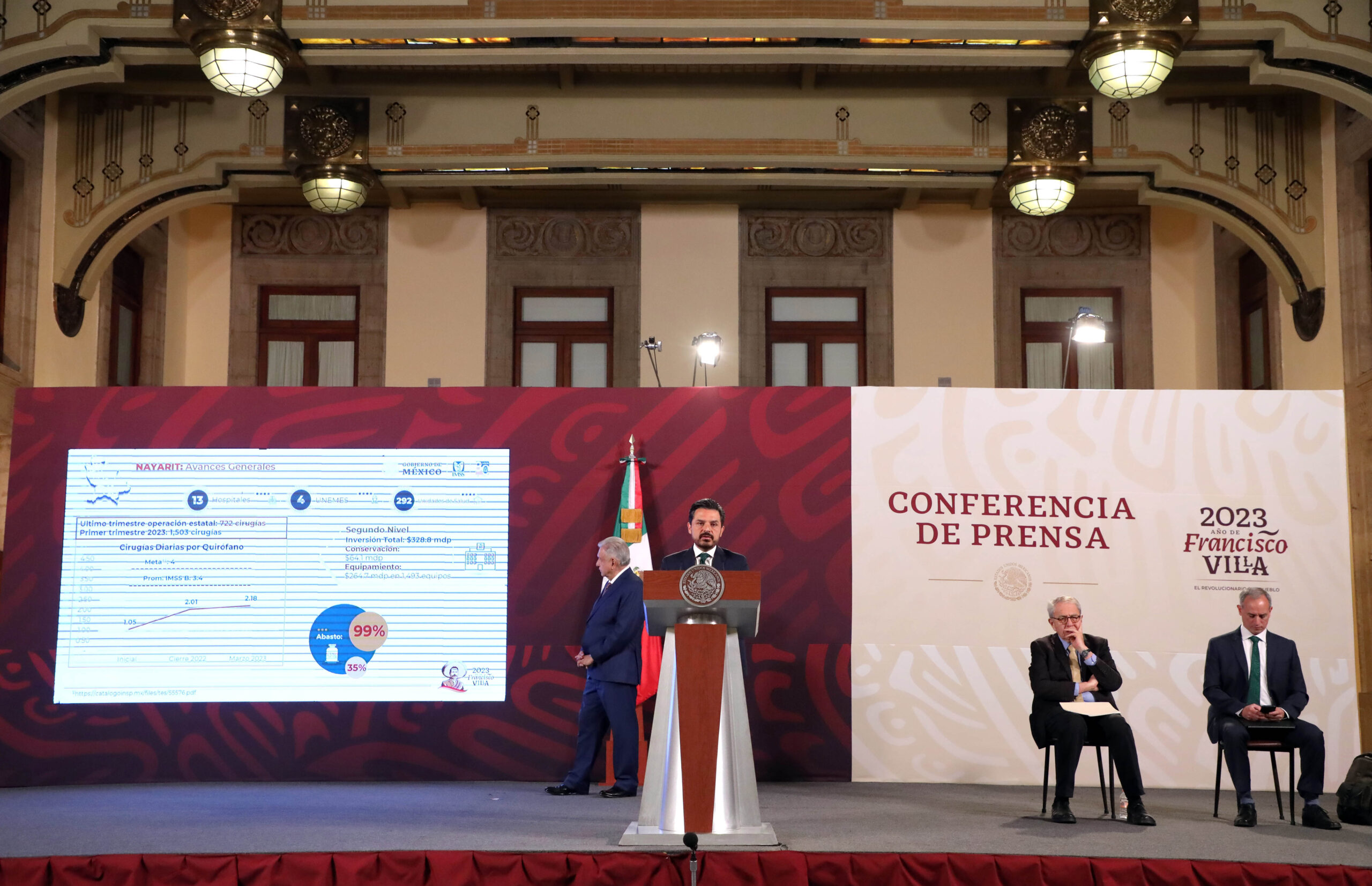 Refirió que en Michoacán hay presencia en 22 hospitales con 45 quirófanos, en los que se realizaban mil 620 cirugías; al primer trimestre de 2023 se hicieron dos mil 569. La productividad de los quirófanos pasó de 1.23 a 1.95 cirugías diarias. La inversión en el segundo nivel de atención es de 530.9 millones de pesos y el surtimiento de recetas se ubica en 96 por ciento.
