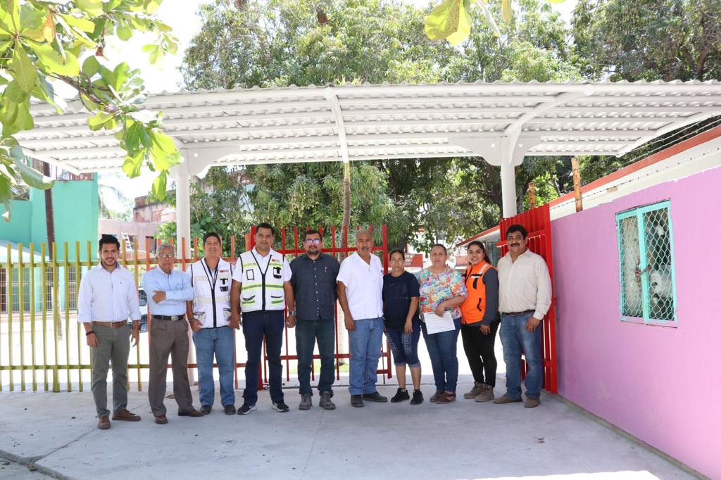 Las escuelas beneficiadas son las primarias “Salvador Pérez Mancilla” y “Juana Ramírez Suárez”, donde se construyó un pórtico en beneficio del alumnado, personal docente y administrativo, así como padres y madres de familia, para evitar su exposición directa al sol; además de los planteles “Basilio Vadillo” y “Elías Zamora Verduzco”; así como el jardín de niños “María Teresa Naranjo Villalobos”.