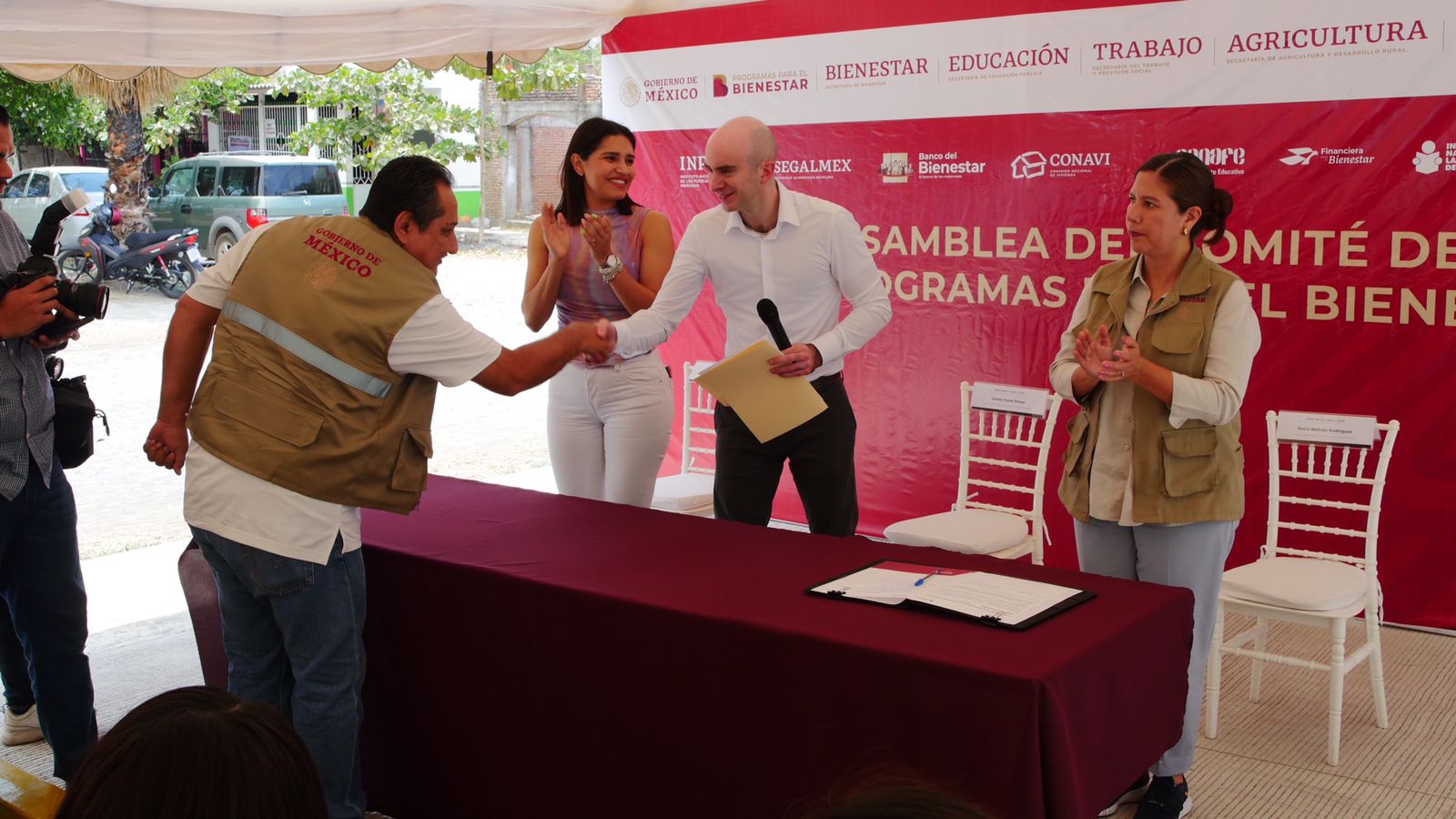 La mañana de hoy, ambos funcionarios federales estuvieron presentes en las sucursales del Banco del Bienestar de la ciudad de Tecomán y de la localidad de Cerro de Ortega; así como en la cabecera municipal de Armería, donde tomaron protesta a las y los integrantes del Comité de Programas para el Bienestar respectivo.