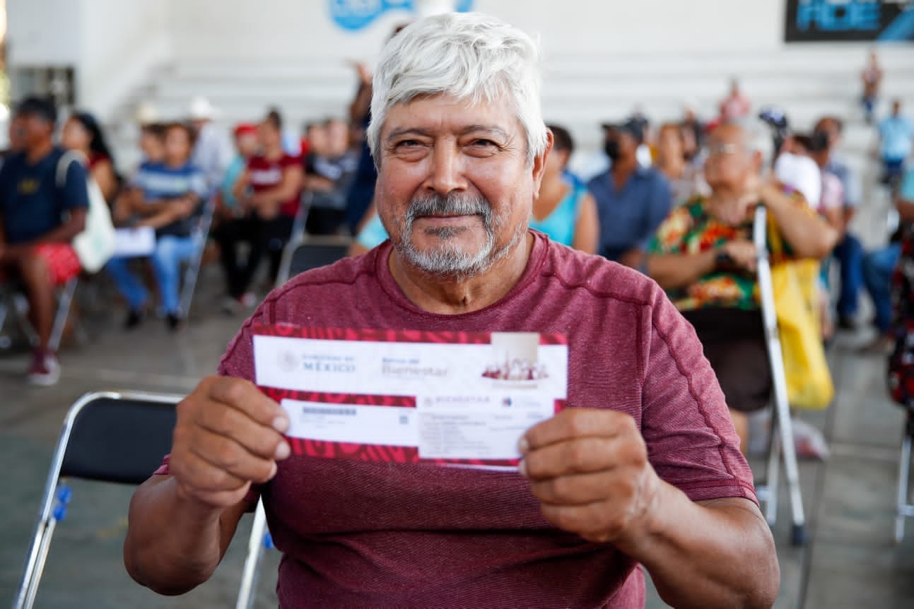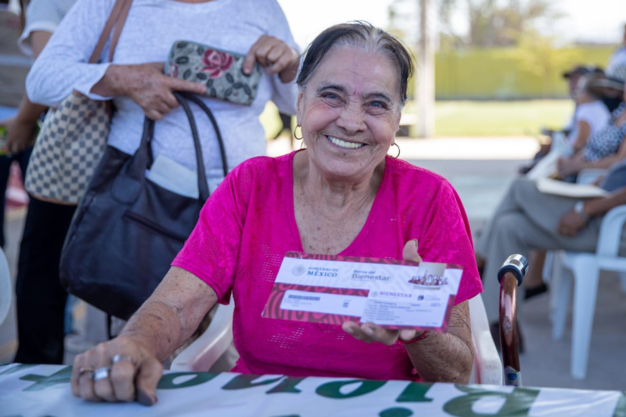 Destacó que tener la tarjeta del Banco del Bienestar permite fortalecer la entrega directa y sin intermediarios para hacer efectivo el derecho universal de las personas adultas mayores de 65 años a recibir la pensión.