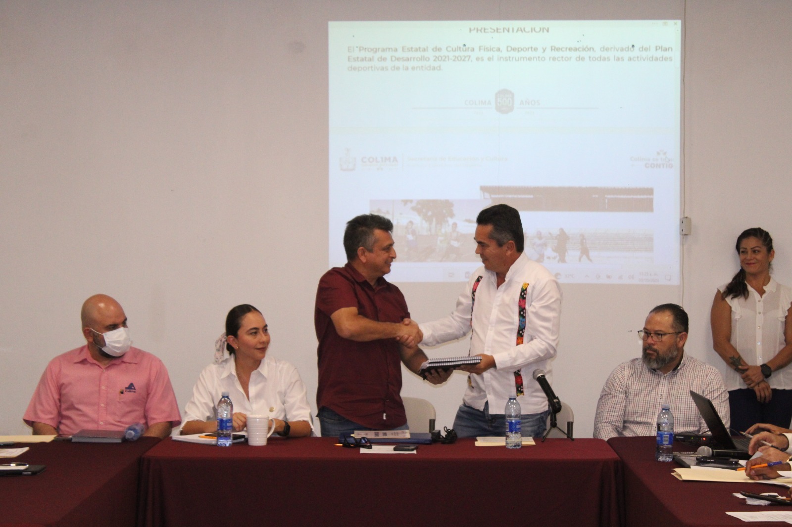 El Instituto Colimense del Deporte (Incode) instaló en sesión ordinaria el Consejo del Sistema Estatal de Cultura Física y Deporte, donde su director general, Alejandro Rodríguez Alvarado, presentó y entregó el Programa Estatal de Cultura Física, Deporte y Recreación 2023 a Carlos Chávez López, representante del secretario de Educación y Cultura, Adolfo Núñez González, y a la diputada Andrea Naranjo Alcaraz, presidenta de la Comisión de Salud y Deporte del Congreso del Estado de Colima.