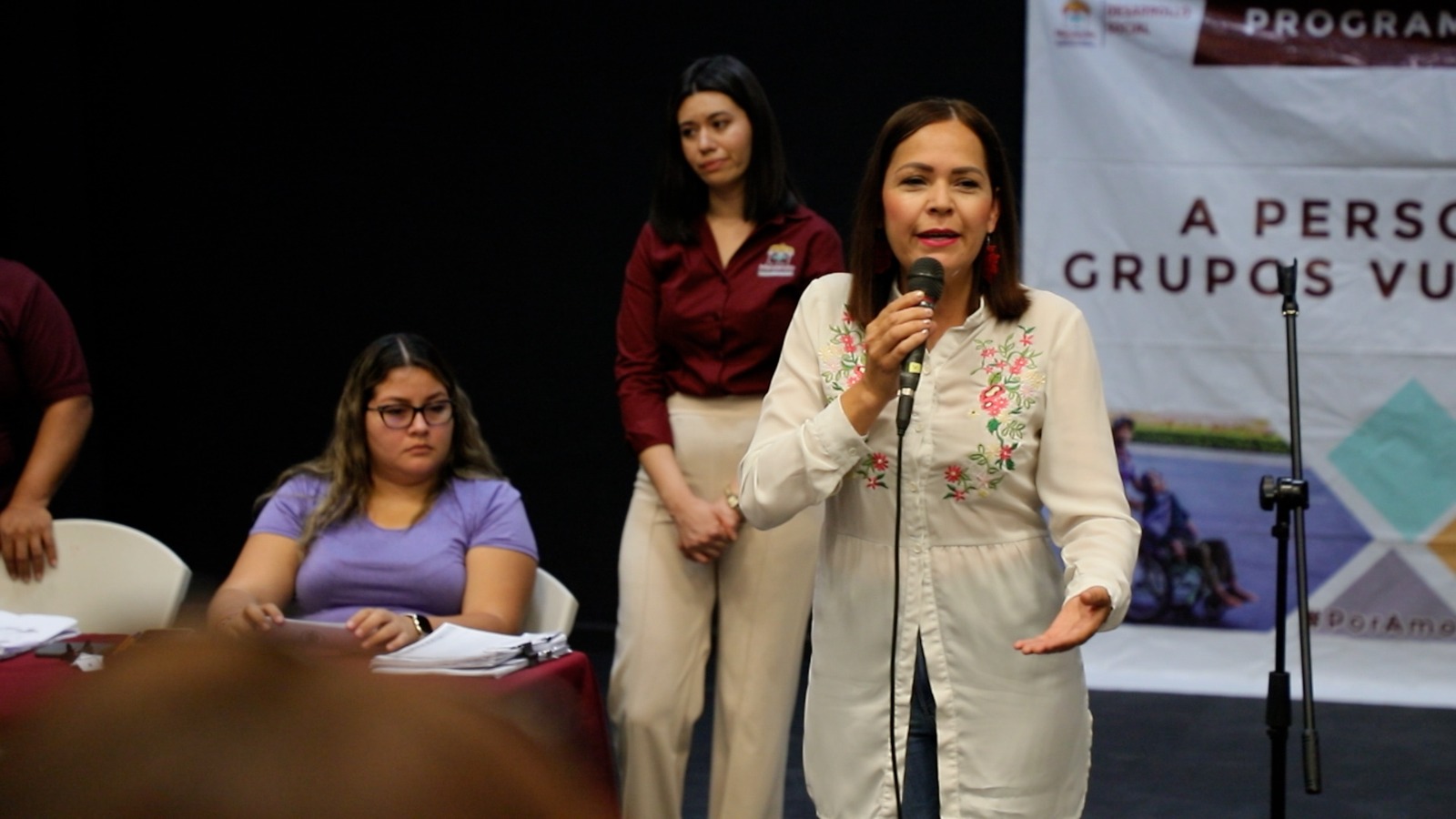 En el uso de la voz, la directora de Desarrollo Social, Rosacruz Rodríguez, adelantó que, en agosto, la presidenta Griselda Martínez entregará un apoyo económico a las personas que tengan a su cargo niñas, niños o jóvenes en edad escolar, “esto será una sola la ayuda para iniciar el ciclo escolar; para uniformes, calzado, útiles. En su momento les daremos los detalles”.