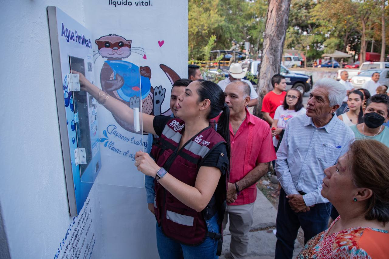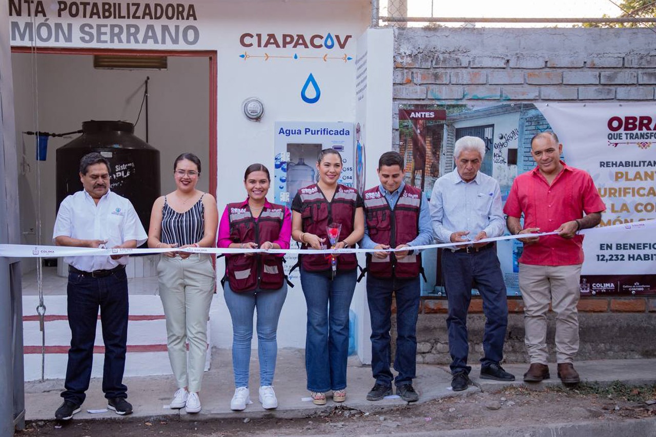 La gobernadora Indira Vizcaíno Silva y el titular de la Comisión Intermunicipal de Agua Potable y Alcantarillado de Colima y Villa de Álvarez (Ciapacov), Vladimir Parra Barragán, entregaron la tarde de este martes la rehabilitación de la planta purificadora de agua en la colonia Ramón Serrano en Villa de Álvarez, en la que se invirtieron 134 mil 768 pesos y que llevaba diez años sin recibir ninguna atención o mejora en su infraestructura.