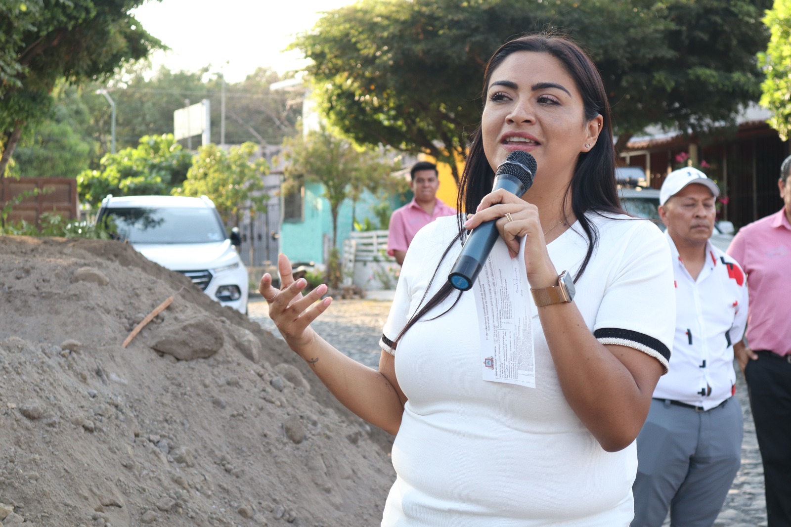 Acompañaron a la presidenta integrantes del Cabildo, funcionarios municipales, el presidente de la Junta Municipal, los miembros del comité pro-obra y personal de la empresa que ejecutará la obra.