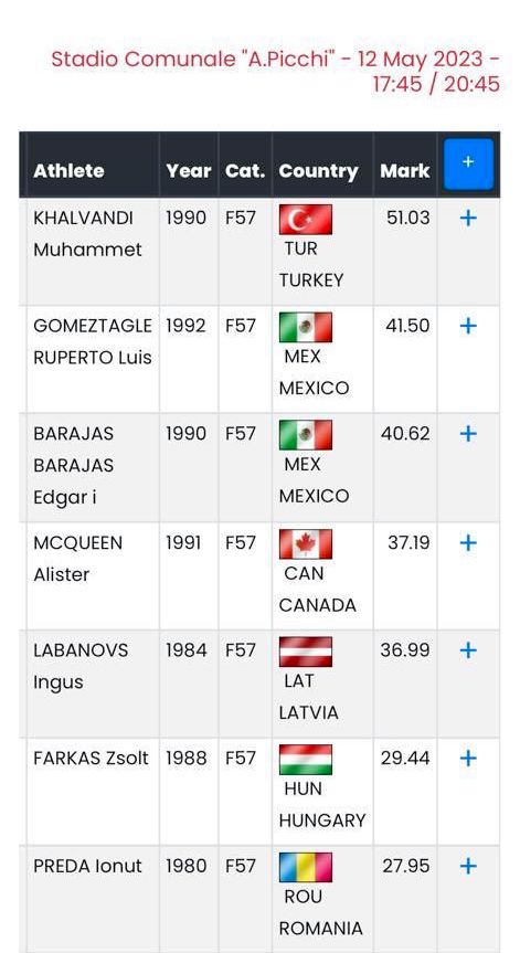 Este viernes, en su prueba de lanzamiento de jabalina durante el Gran Premio Mundial de Para Atletismo 2023 celebrado en Jesolo, Italia, el colimense Édgar Barajas quedó en tercer lugar, con 40.62 metros. El segundo lugar fue para su compatriota Luis Gómez Tagle, quien alcanzó 41.50 metros y el primero para el turco Muhammet Khalvandi, que logró una marca de 51.03 metros. Édgar Barajas es preparado por un equipo multidisciplinario de la Universidad de Colima, que incluye a su entrenador, el Dr. Pedro Julián Flores Moreno; los entrenadores Leo Sebastián Vázquez Martínez y Omar Zahir López Rosales, estudiantes; y al Dr. Walter Serrano Moreno, nutriólogo.