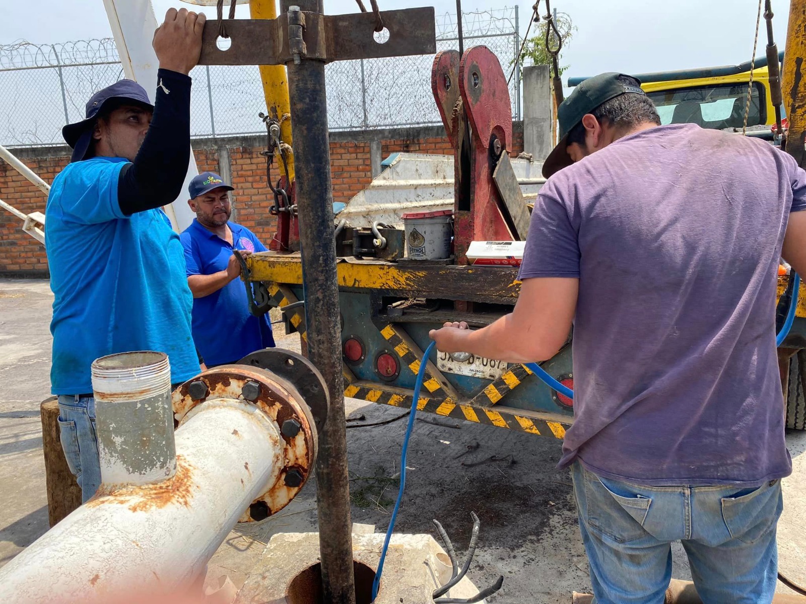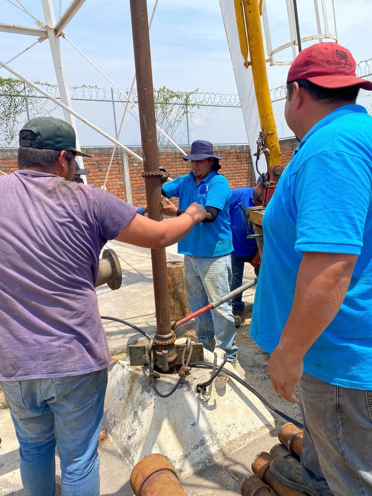 Este viernes 19 de mayo, el equipo de electromecánica de CIAPACOV, a cargo del Ing. Jesús Martín Preciado y con el apoyo de la Arq. Paola Corona Cruz, Coordinadora del equipo operativo, se realizó la extracción y sustitución de la bomba, columna y cable sumergible del Pozo Tabachines II de Villa de Álvarez, que abastece al Fraccionamiento Valle del Sol y la zona norte de Tabachines.
