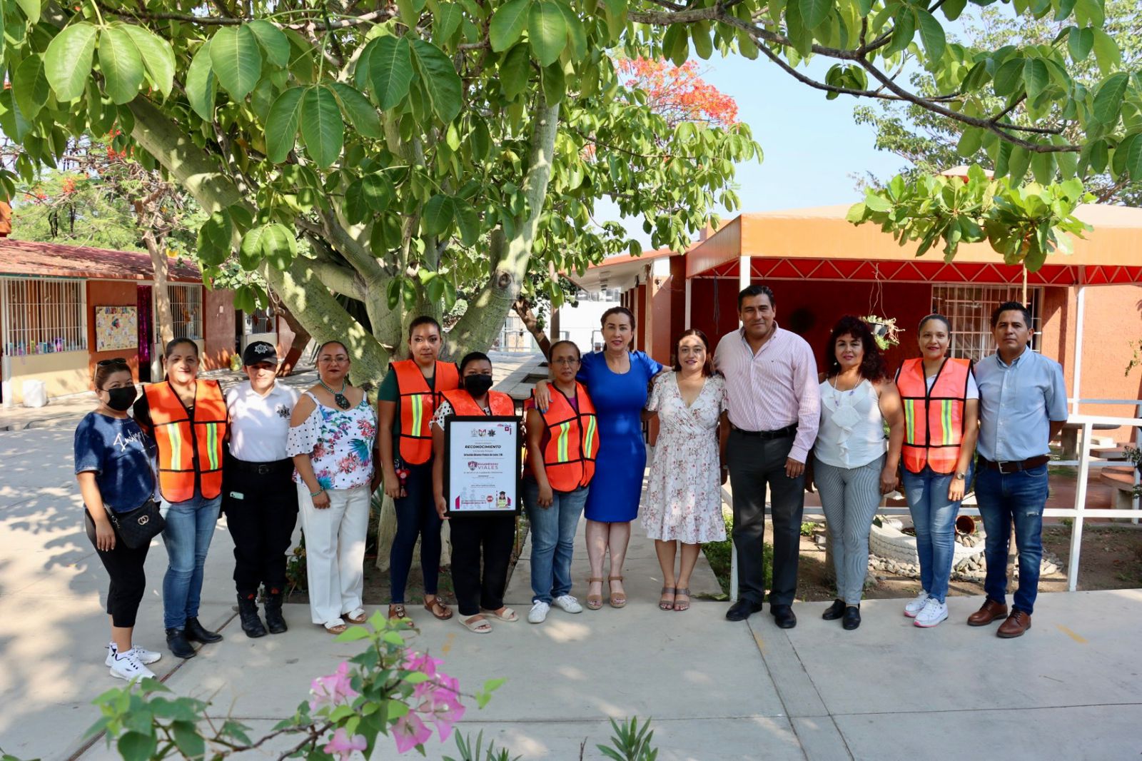 *Presidenta Tey Gutiérrez entrega reconocimiento a padres de familia y maestros de la primaria Griselda Álvarez, por coadyuvar a fortalecer la seguridad de niñas y niños.