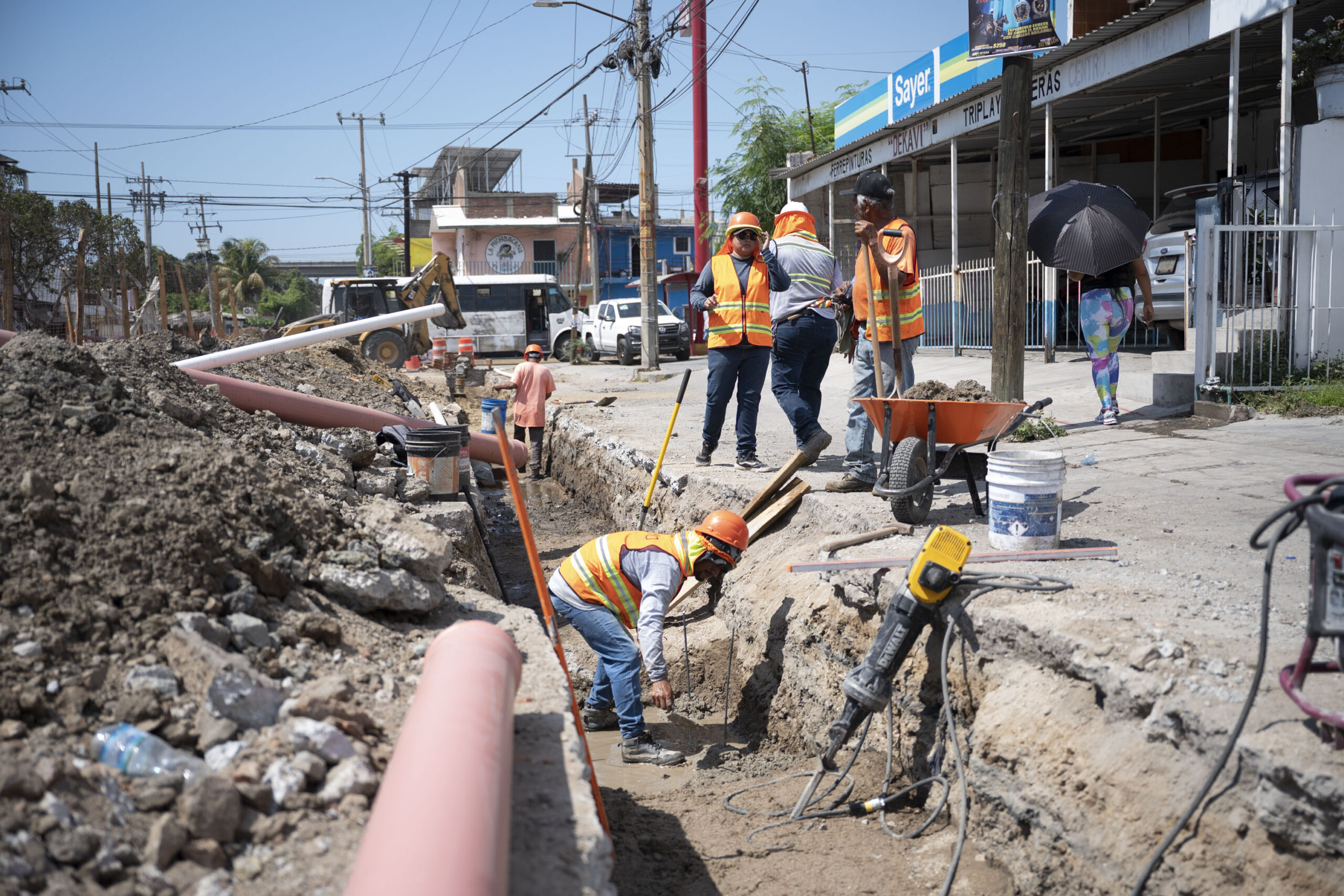 Dijo que, para no afectar, dichos servicios, se instaló una línea paralela a los trabajos que se realizan, los cuales se estima quedarán concluidos en 2 semanas más “queremos que en el menor tiempo posible concluir estos trabajos para no seguir afectando a las y los vecinos”.