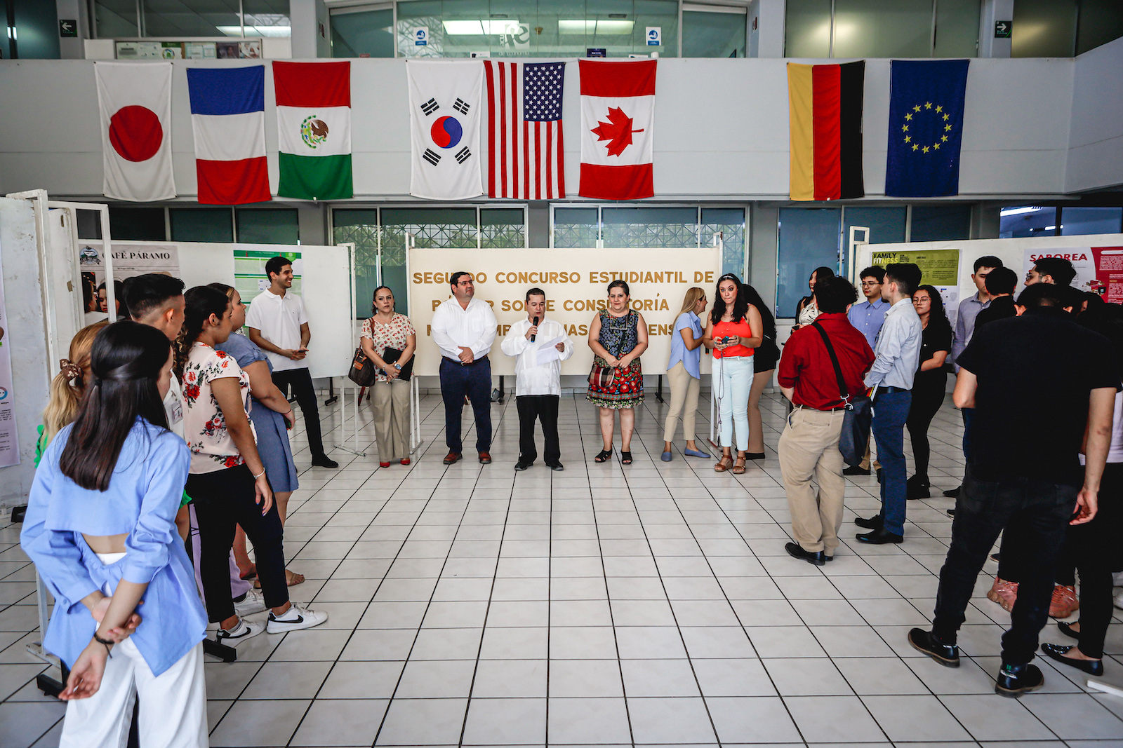 En este evento participaron 18 equipos integrados por estudiante de sexto semestre del área de Negocios Internacionales, quienes expusieron sus trabajos en inglés y español, y fueron evaluados por Guadalupe Ballesteros y Ana Cristina Ballesteros, de la empresa Apliklo, consultoría y capacitación, así como por Fernando Sánchez, director general de Innovación y Cultura Emprendedora de la UdeC.