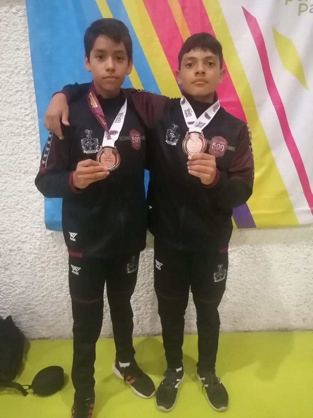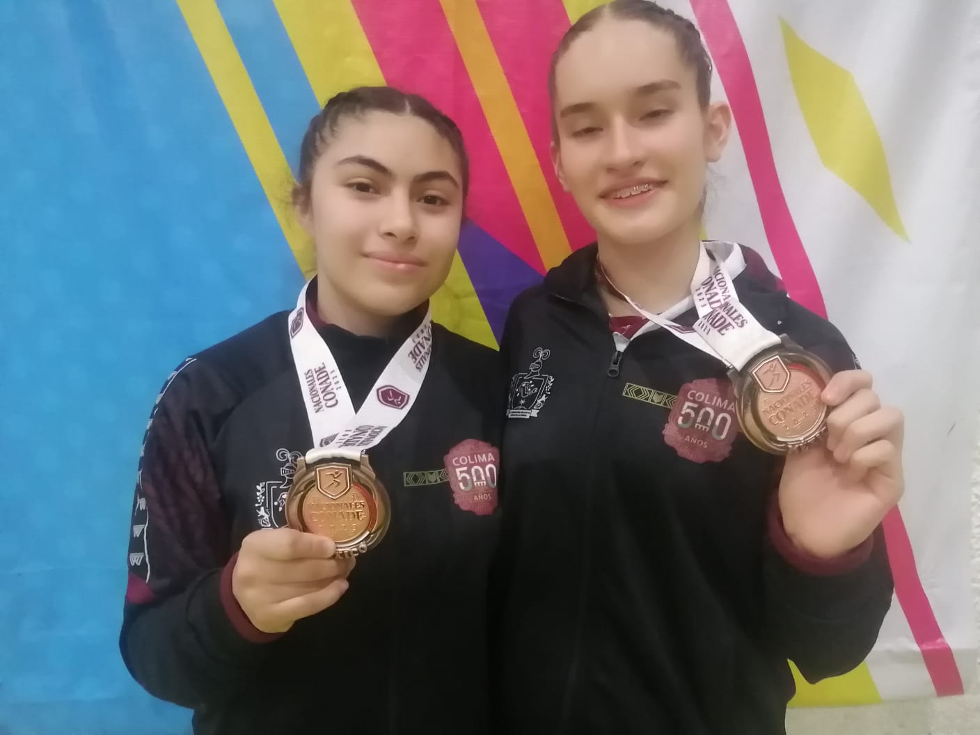 Deportistas de Colima volvieron a subir al pódium al obtener tres medallas más -una plata y dos bronces-, en el segundo día de la gimnasia de trampolín en los Nacionales Conade 2023 que tienen lugar en Aguascalientes. La primera presea de bronce en modalidad por equipos categoría 15-16 años femenil. Mariana Gil Villaseñor y Nashla Rivera de la Lanza la lograron con 134.426 unidades detrás de la plata para Veracruz con 161.670 y el oro para Puebla con 168.810 unidades.