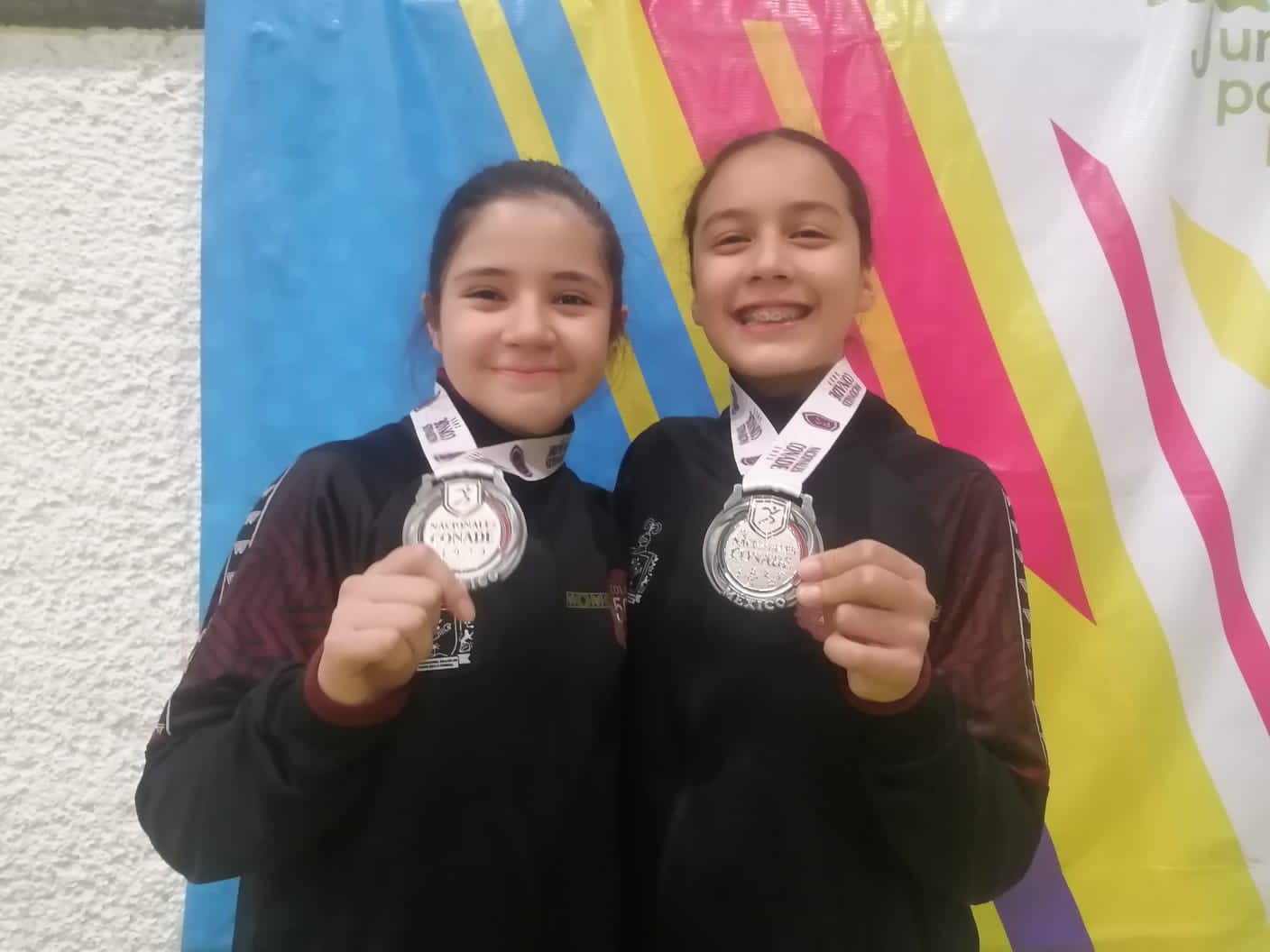 Las niñas colimenses de la categoría 13-14 años, Fabiola Ochoa Cambrón y Alexa Pérez Alfaro, se inspiraron para alcanzar la plata, también en sincronizados, aprovechando un fallo de las representantes de Jalisco, que se conformaron con el bronce, mientras Sonora se llevó el oro.