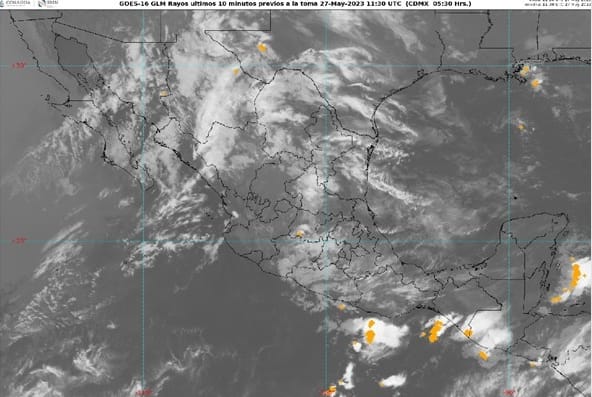 En el pronóstico por regiones, para el Pacífico Centro se espera cielo parcialmente nublado por la mañana y nublado por la tarde con lluvias puntuales fuertes, descargas eléctricas y posible caída de granizo en Jalisco y Michoacán; lluvias aisladas en Colima y sin lluvia en Nayarit. Ambiente fresco por la mañana y muy caluroso durante la tarde.