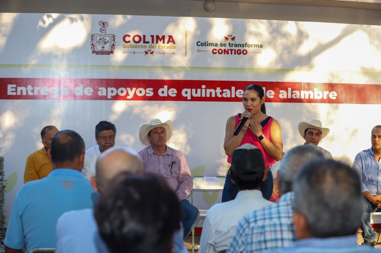La tarde de este jueves, la gobernadora Indira Vizcaíno Silva, entregó quintales de alambre a la Unión Ganadera Regional de Colima, en evento que se realizó en las instalaciones de esta organización en la capital colimense; la mandataria señaló que con esta acción se van cumpliendo los compromisos que se realizaron con este sector.