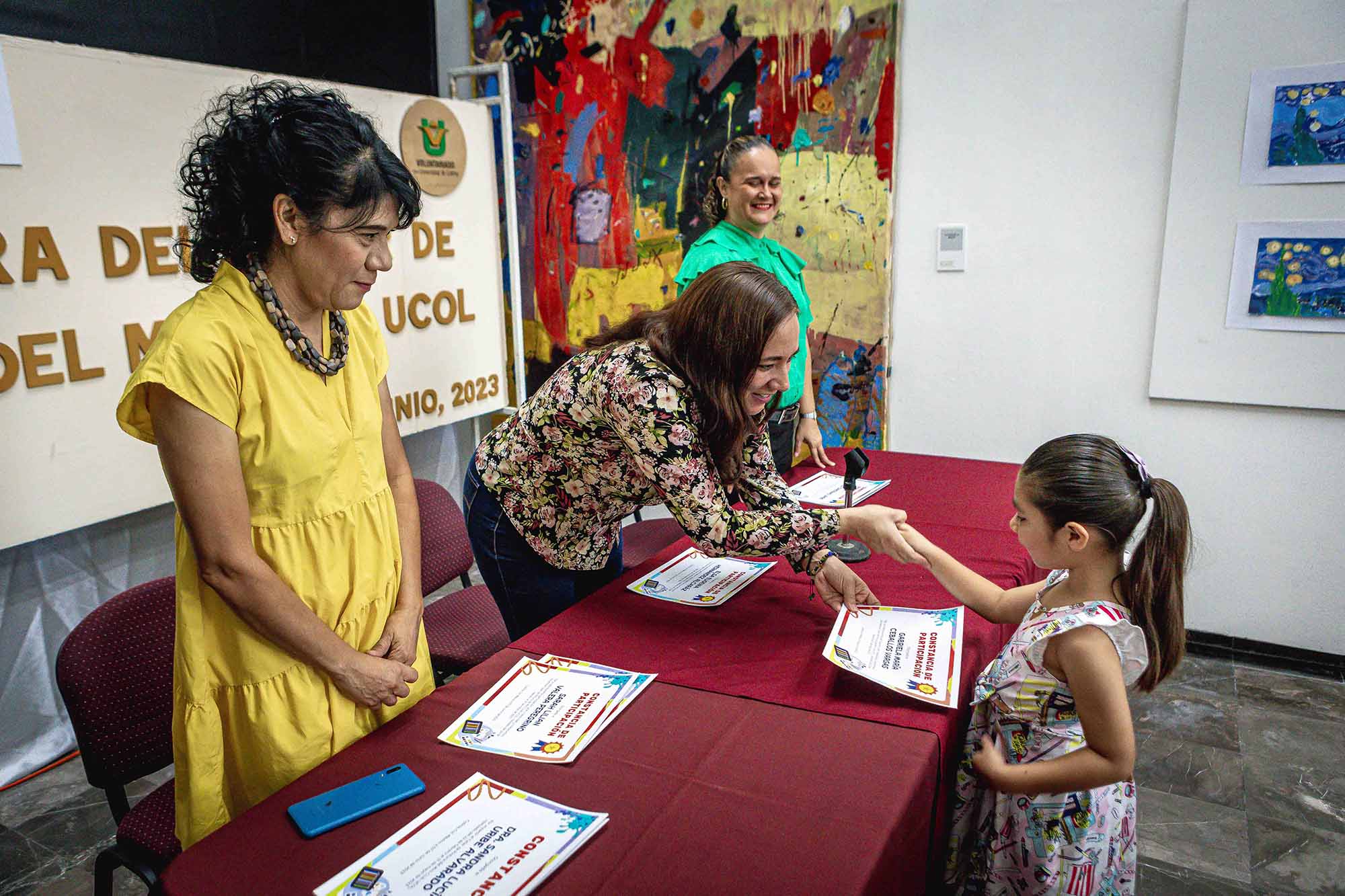 Para clausurar este curso, se contó con la presencia de Gabriela Vargas Rueda, directora del CUBI; de Rosa María Macedo Trejo, responsable del área de Desarrollo Familiar, y de la artista Sandra Uribe, maestra del curso.