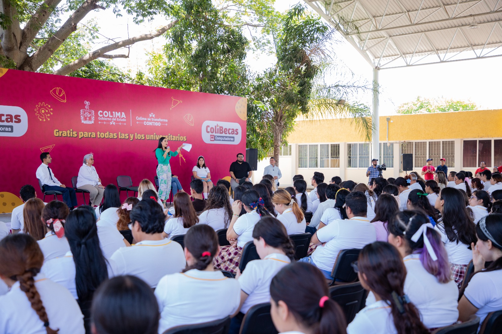 Este martes, la gobernadora de Colima, Indira Vizcaíno Silva, presentó a estudiantes del Instituto Superior de Educación Normal del Estado de Colima (Isenco) campus Cuauhtémoc, el programa ColiBecas Computadoras, a través del cual se entregarán laptops gratuitas a casi 20 mil alumnas y alumnos de nivel profesional de escuelas públicas de toda la entidad.
