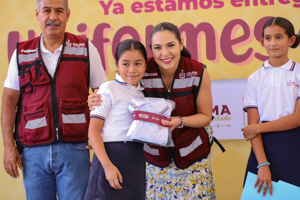 La gobernadora Indira Vizcaíno Silva inició este viernes la entrega de ColiBecas Uniformes en la primaria “Miguel Galindo” de Minatitlán, donde expresó que en este municipio otorgarán más de 2 mil uniformes y en toda la entidad se beneficiará a más de 111 mil estudiantes de preescolar, primaria y secundaria; para la entrega de uniformes en Minatitlán, el Gobierno del Estado de Colima invierte más de 500 mil pesos, mientras que en el estado la inversión global será alrededor de 30 millones de pesos.