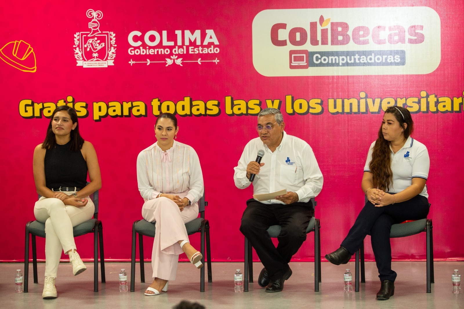 La mandataria indicó que, desde el año pasado, el Gobierno Colima implementó ColiBecas (para entregar uniformes, mochilas, útiles y computadoras), únicamente en nivel básico, con el objetivo es complementar las acciones que ya realiza el Gobierno de México que encabeza el presidente Andrés Manuel López Obrador; pero este año se determinó apoyar también a las y los estudiantes de universidades públicas.