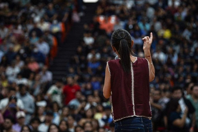 Tras hacer un breve resumen de los grandes movimientos estudiantiles como lo fue el de 1968 o en el que ella misma participó cuando fue parte del Consejo Estudiantil Universitario, destacó que la universidad pública es el derecho fundamental para los jóvenes de México, pues solo de esta manera es posible abrir nuevos espacios. Sin embargo, aseveró que por décadas las instituciones educativas fueron parte del privilegio de unos cuantos, por lo que insistió que aún hay mucho camino por recorrer.