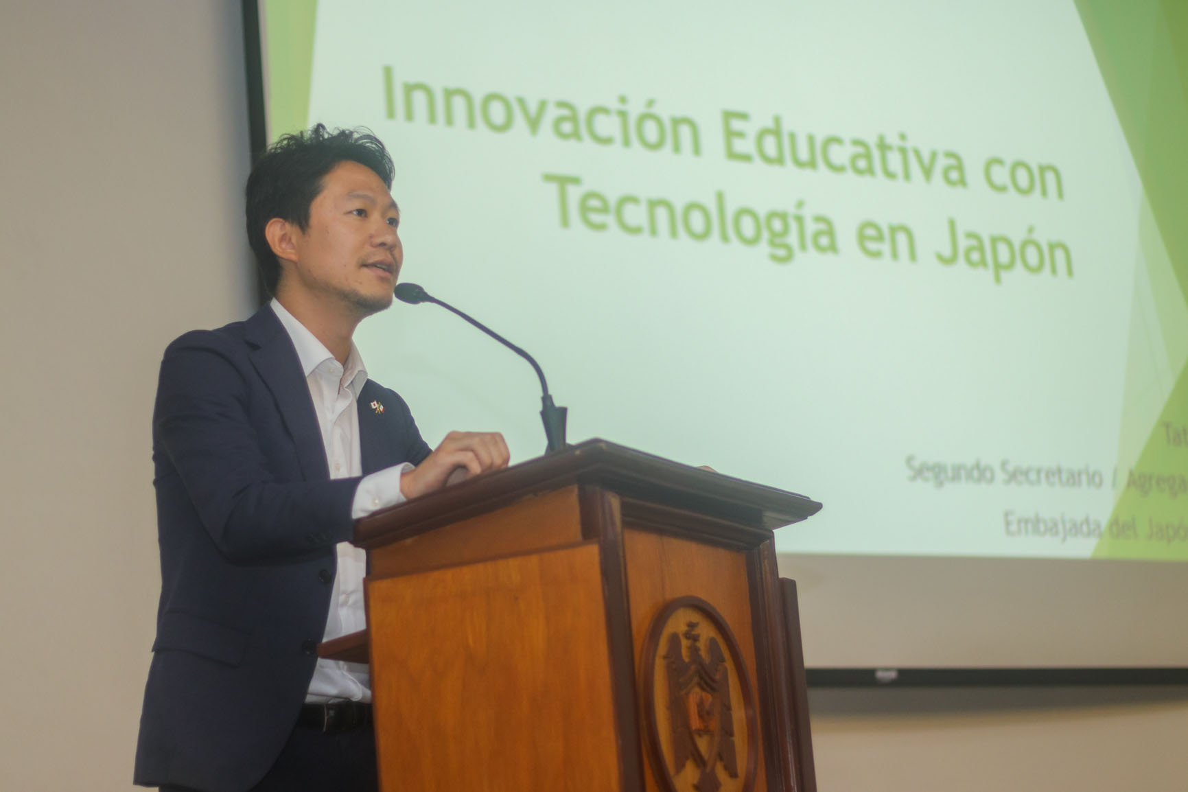 *Tatsuya Sakai, agregado cultural de la Embajada de Japón en México, dictó en español la conferencia: “Innovación Educativa con Tecnología en Japón”