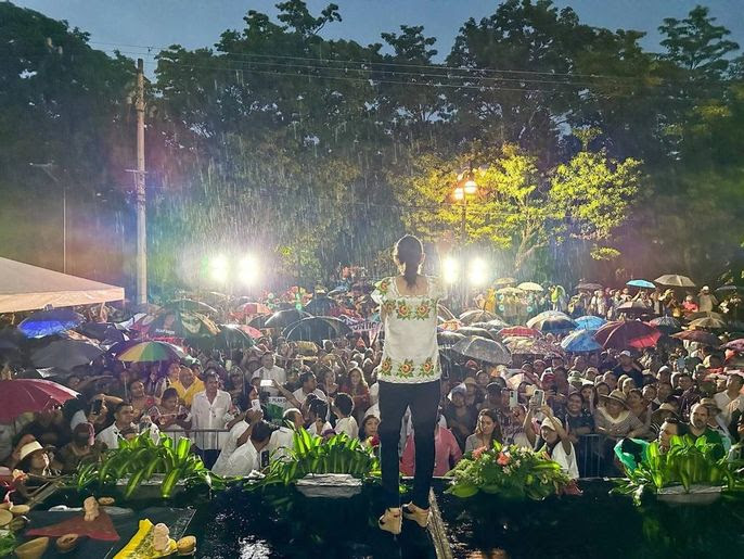 ‘’Aquí en la tierra de Elvia Carrillo Puerto las mujeres yucatecas nos han enseñado que no hay que vencerse, que las mujeres tenemos derechos y que las mujeres tenemos la capacidad para llegar a cualquier espacio de la vida pública’’.