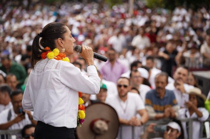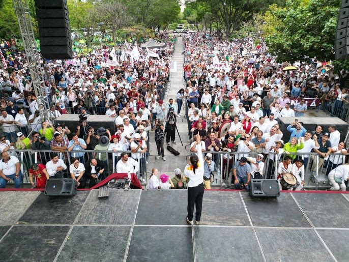 Guadalajara, Jalisco, a 9 de julio de 2023.- “Continuar con los planes de justicia para los pueblos originarios de todo el país”, es primordial, destacó la Dra. Claudia Sheinbaum Pardo desde la Plaza Juárez en Guadalajara, Jalisco, donde también aseguró que es tiempo de las mujeres, quienes pueden ser lo que quieran, desde astronautas hasta coordinadoras de la Defensa de la Transformación del país.