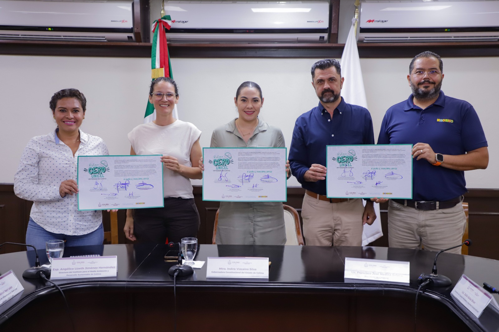 Indira agradeció el compromiso de Canirac y Kiosko por sumarse a esta iniciativa y signar juntas y juntos este Manifiesto Por una Colima libre de Unicel, con lo que nos comprometemos a poner el ejemplo y dejar de utilizar este material. “Es gratificante ver cómo el sector privado se preocupa por el bienestar de nuestra comunidad y el cuidado del medioambiente. La colaboración entre gobierno, empresas y sociedad civil es fundamental para encontrar soluciones efectivas y mitigar el impacto ambiental del unicel en Colima.