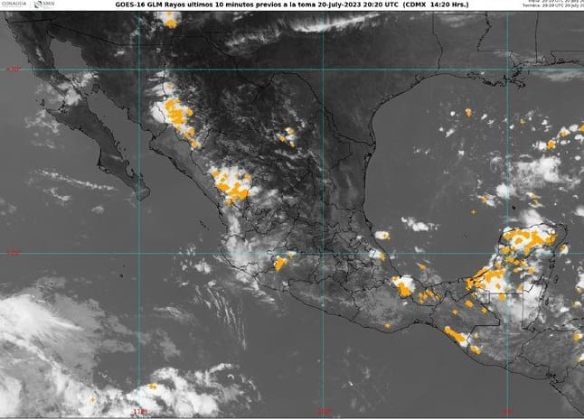 De acuerdo con el Servicio Meteorológico. Nacional (SMN), durante las próximas horas en algunas zonas de Colima podrían registrarse lluvias fuertes con puntuales muy fuertes, de entre 50 y 75 milímetros, al igual que en los estados de Sinaloa, Jalisco, Morelos, Puebla y Campeche.