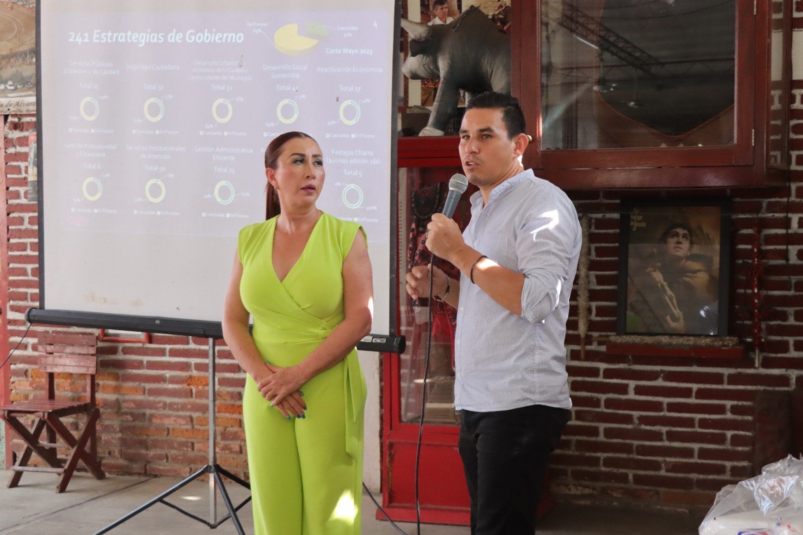 Tey recordó que desde febrero 2023 firmaron 241 metas que reflejan las peticiones de la población y también presentó los avances que tienen en Servicios Públicos, Desarrollo urbanístico, Desarrollo social sostenible, Activación económica, Servicio Institucionales, Gestión administrativa eficiente, entre otros.