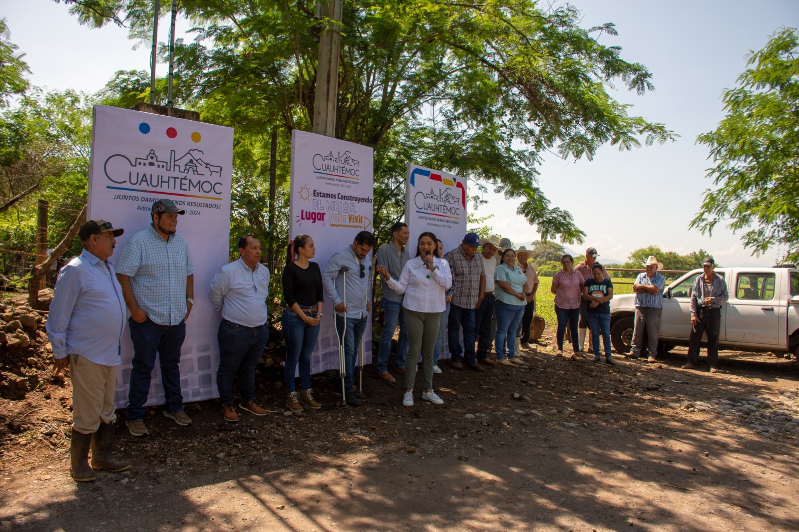 Acompañada del director general de Desarrollo municipal y Planeación, Ruperto Cruz Huerta y la directora de Desarrollo Rural, Liliana Valdovinos; miembros del cabildo y demás funcionarios municipales; la alcaldesa habló del esfuerzo que representa la realización de obras, tomando en cuenta que Cuauhtémoc es el municipio que menos recursos recibe para ello, además de los recortes de participaciones que ya suman cinco millones de pesos.