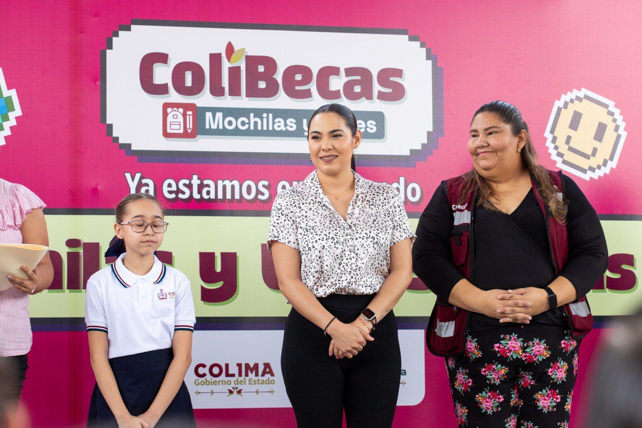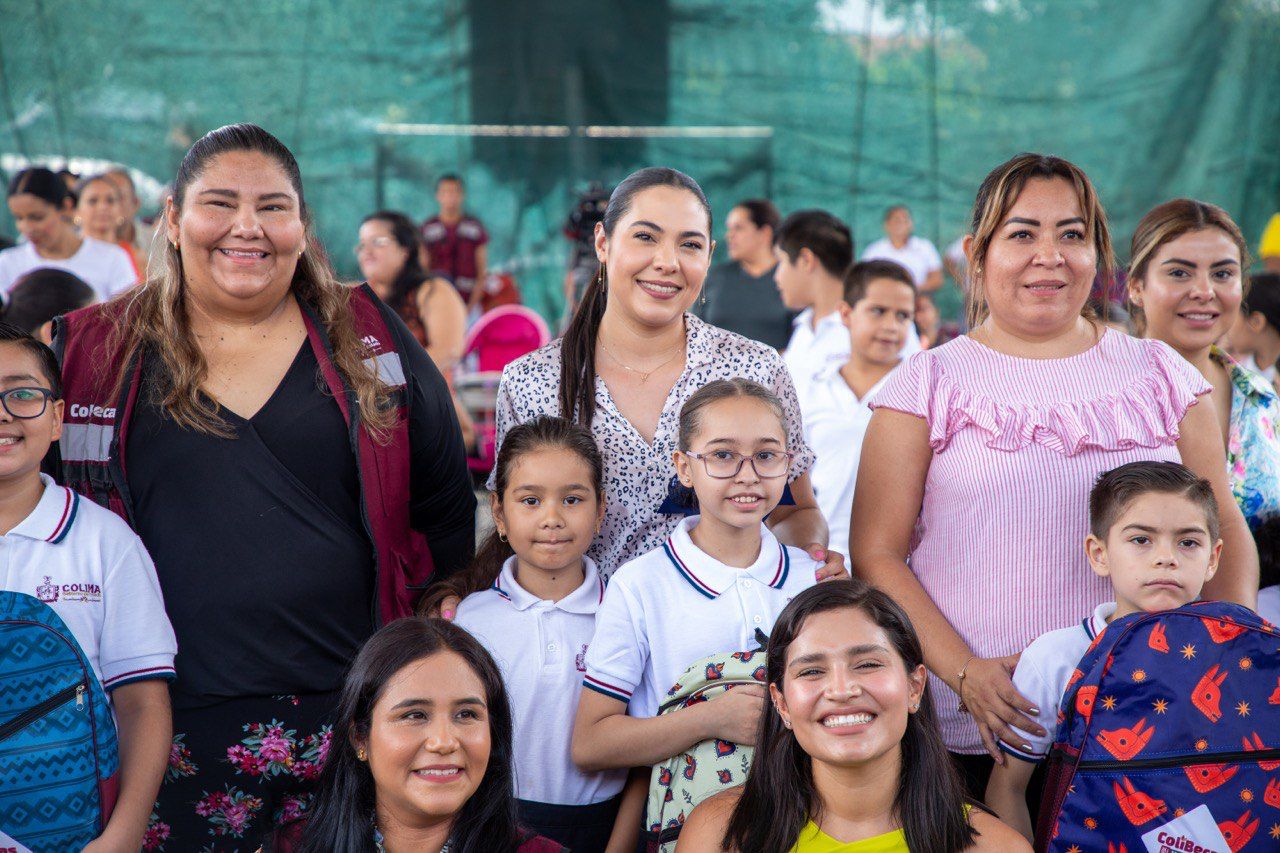 Este jueves, la gobernadora de Colima, Indira Vizcaíno Silva, encabezó la macro-entrega del programa ColiBecas Mochilas y Útiles Escolares gratuitos en la primaria “J. Concepción Rivera Mancilla” de Alcaraces, Cuauhtémoc, municipio en el que se otorgarán más de 3 mil 290 mochilas y útiles escolares a niñas y niños de preescolares y primarias públicas, de los más de 80 mil paquetes que se distribuirán en los diez municipios del estado.