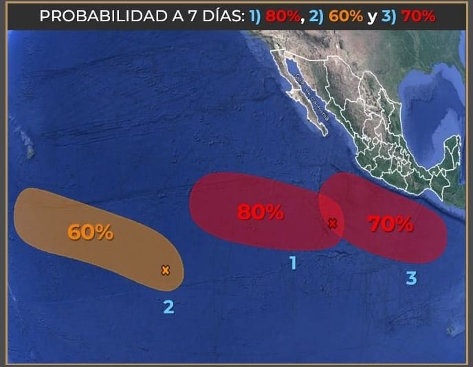 Para el Pacífico Centro, el organismo de la Comisión Nacional del Agua (Conagua) prevé ambiente templado por la mañana, cielo medio nublado a nublado durante el día, con lluvias puntuales muy fuertes en Colima, Nayarit y Jalisco, así como lluvias puntuales fuertes en Michoacán.