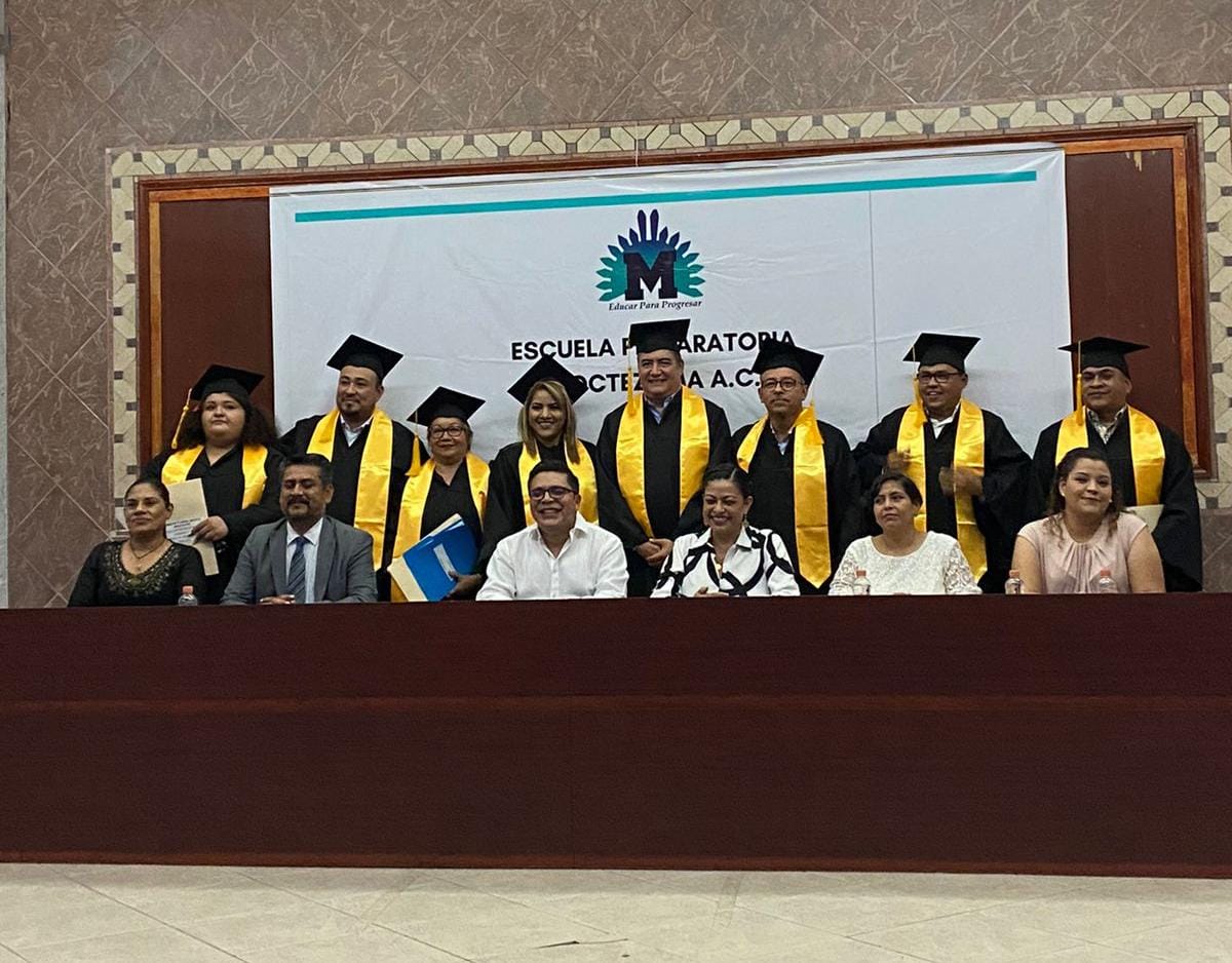Colima, Col. 12 de agosto 2023. Este fin de semana, se llevó a cabo en el Auditorio de la Sección 39 del SNTE, la ceremonia de graduación de la Escuela Moctezuma, misma en que se hizo entrega de Certificados y Actas de Titulación a egresados de las Licenciaturas en Derecho y Administración de Empresas.