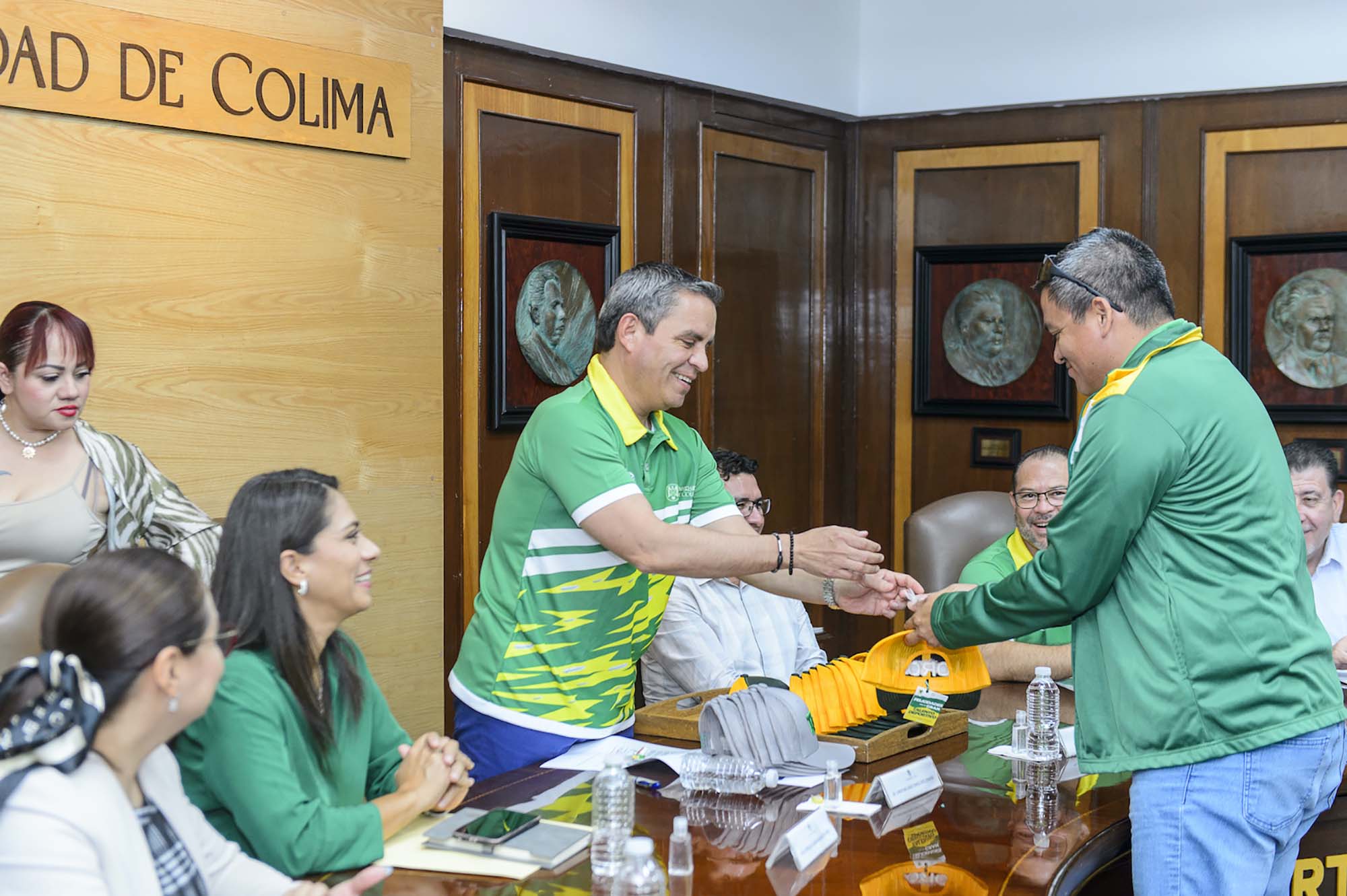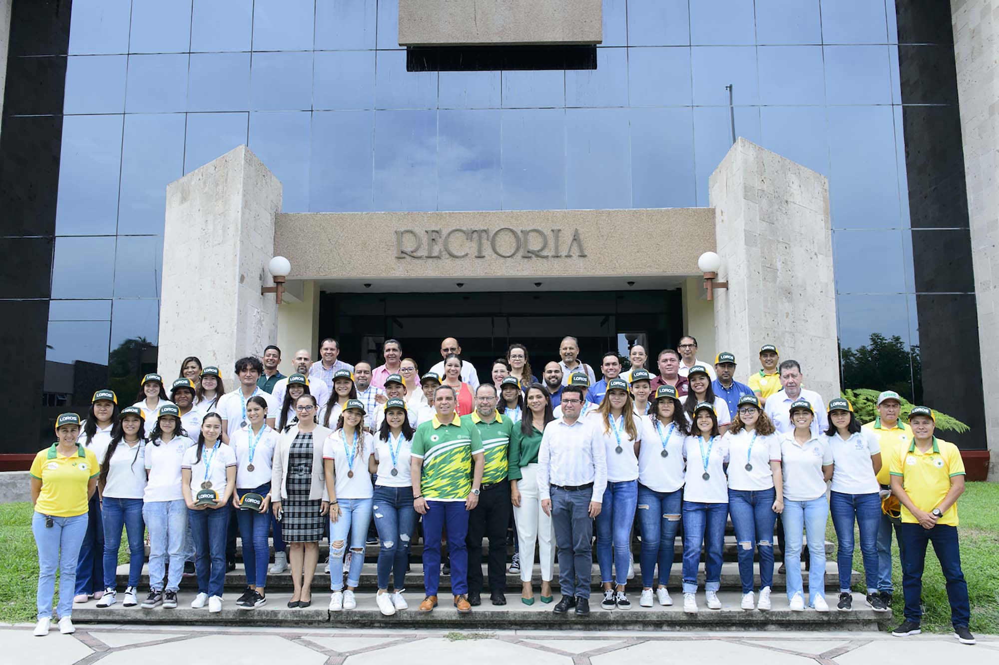 *El rector Christian Torres Ortiz recibió la visita de las y los deportistas de bachillerato de la Universidad de Colima que obtuvieron medallas o buenos resultados en los pasados Juegos Nacionales Deportivos del CONADEMS.