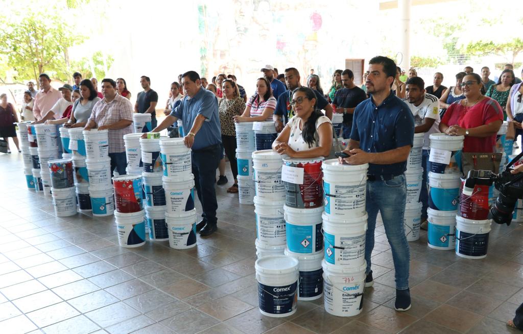 Educación y Cultura entrega cubetas de pintura para 48 escuelas públicas de Colima