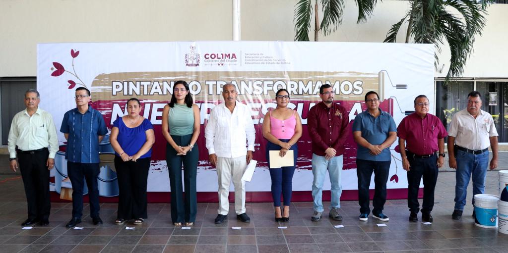El funcionario estatal añadió que en este evento se entregaron cubetas de pintura para 15 escuelas, a la vez que se entregarán vales intercambiables a 33 directoras y directores de otros planteles, cuya pintura se entregará en las oficinas de las Unidades de Servicios Administrativos y Educativos (USAE) de Tecomán y Manzanillo.
