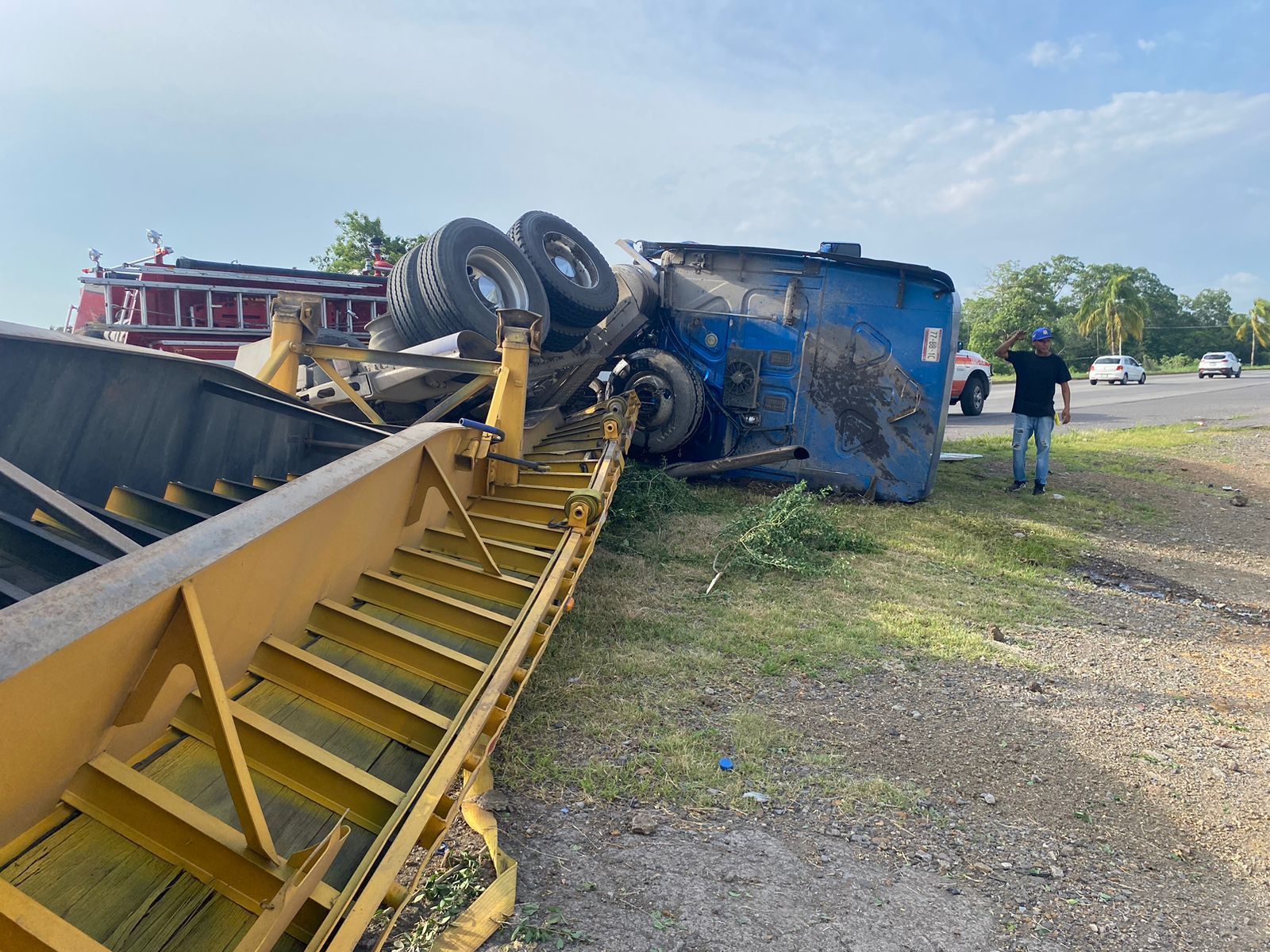 Un tráiler resultó volcado, en un fuerte accidente suscitado esta tarde de miércoles, en el Libramiento Ejército Mexicano, muy cerca de la glorieta conocida como el “Crucero de la Muerte”.