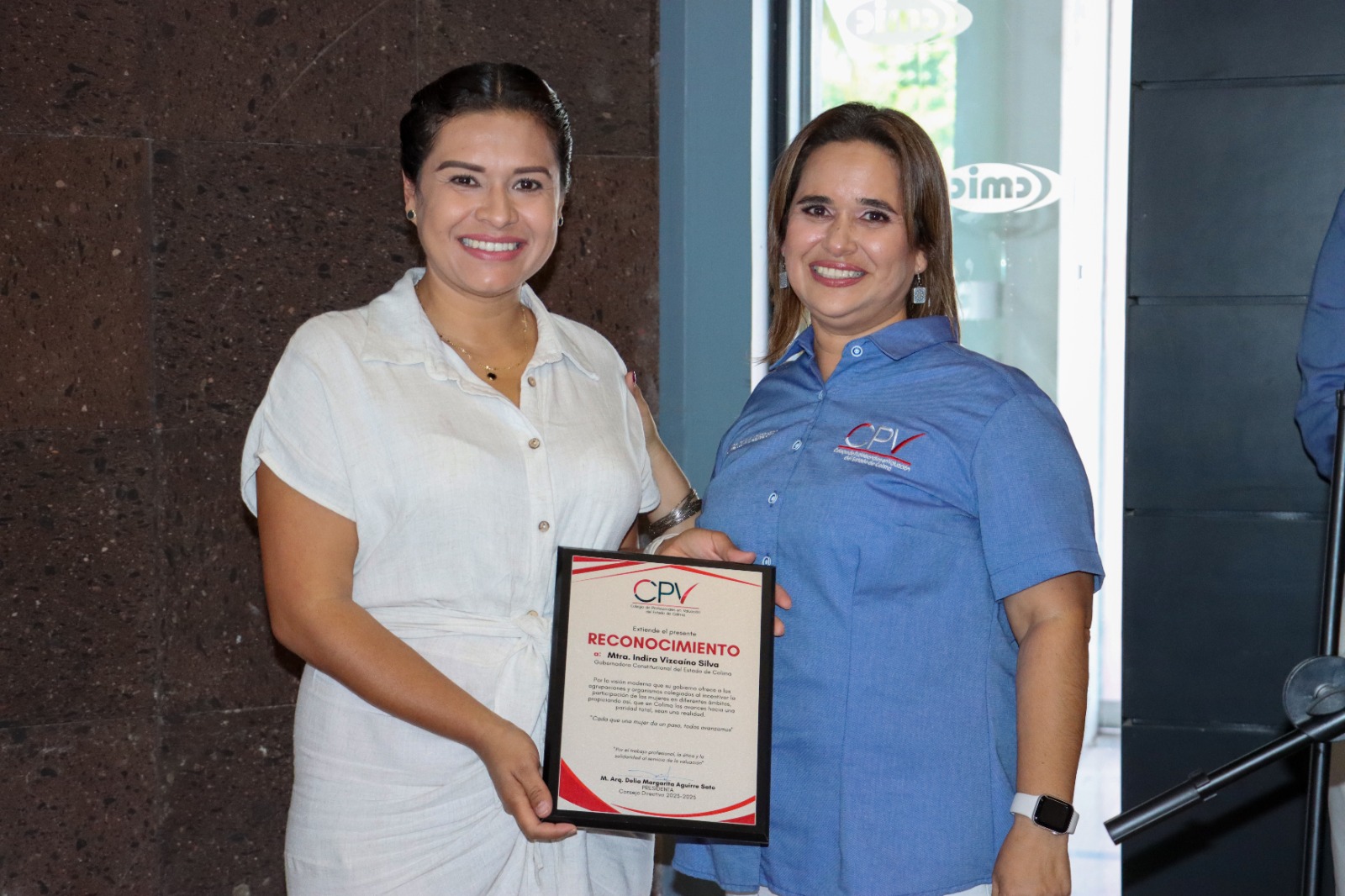 Durante el evento, se entregó un reconocimiento para la gobernadora Indira Vizcaíno Silva, por la visión moderna que su gobierno ofrece a las agrupaciones y organismos colegiados, al incentivar la participación de las mujeres en diferentes ámbitos.