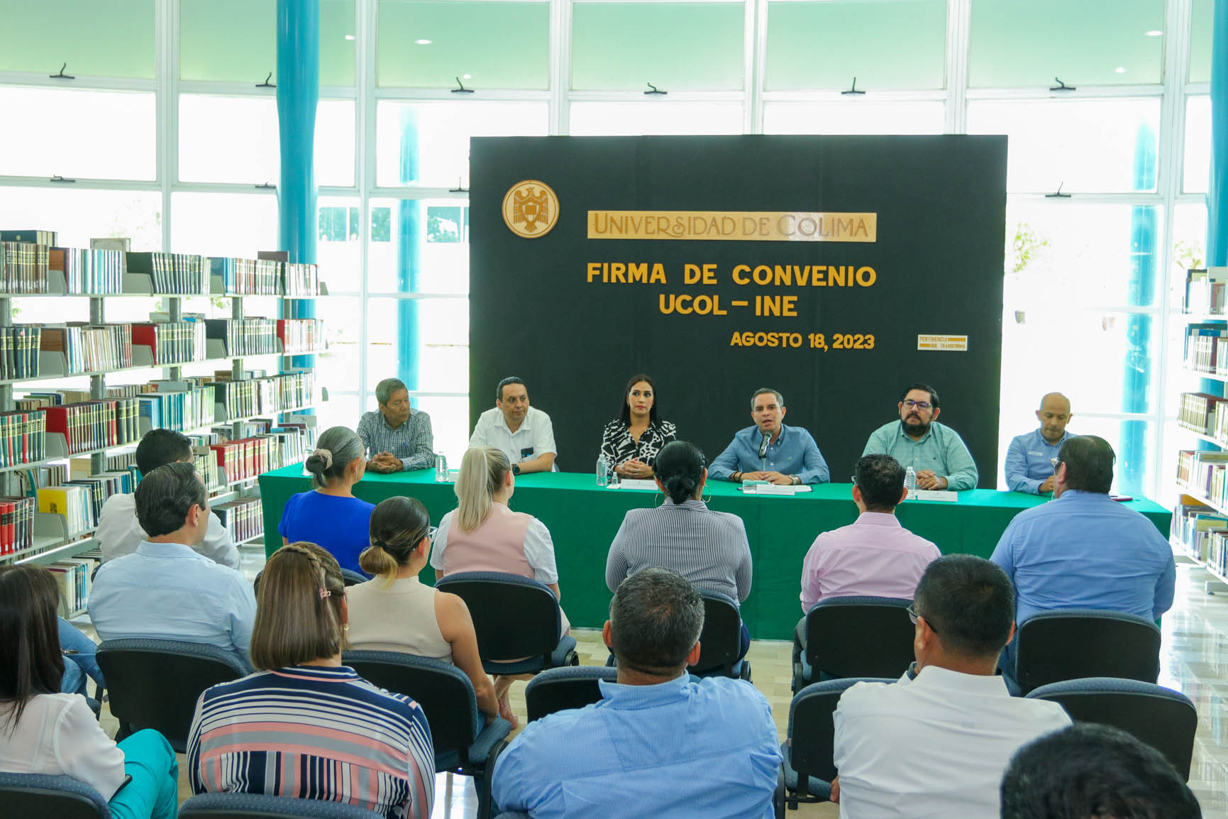 Para colaborar en materia de educación cívica, formación democrática, en fomento de la participación ciudadana y la promoción del voto entre las y los jóvenes, este viernes el Instituto Nacional Electoral (INE) y la Universidad de Colima firmaron dos convenios, uno general y otro específico, en la biblioteca de la Facultad de Ciencias Políticas y Sociales del campus Norte.