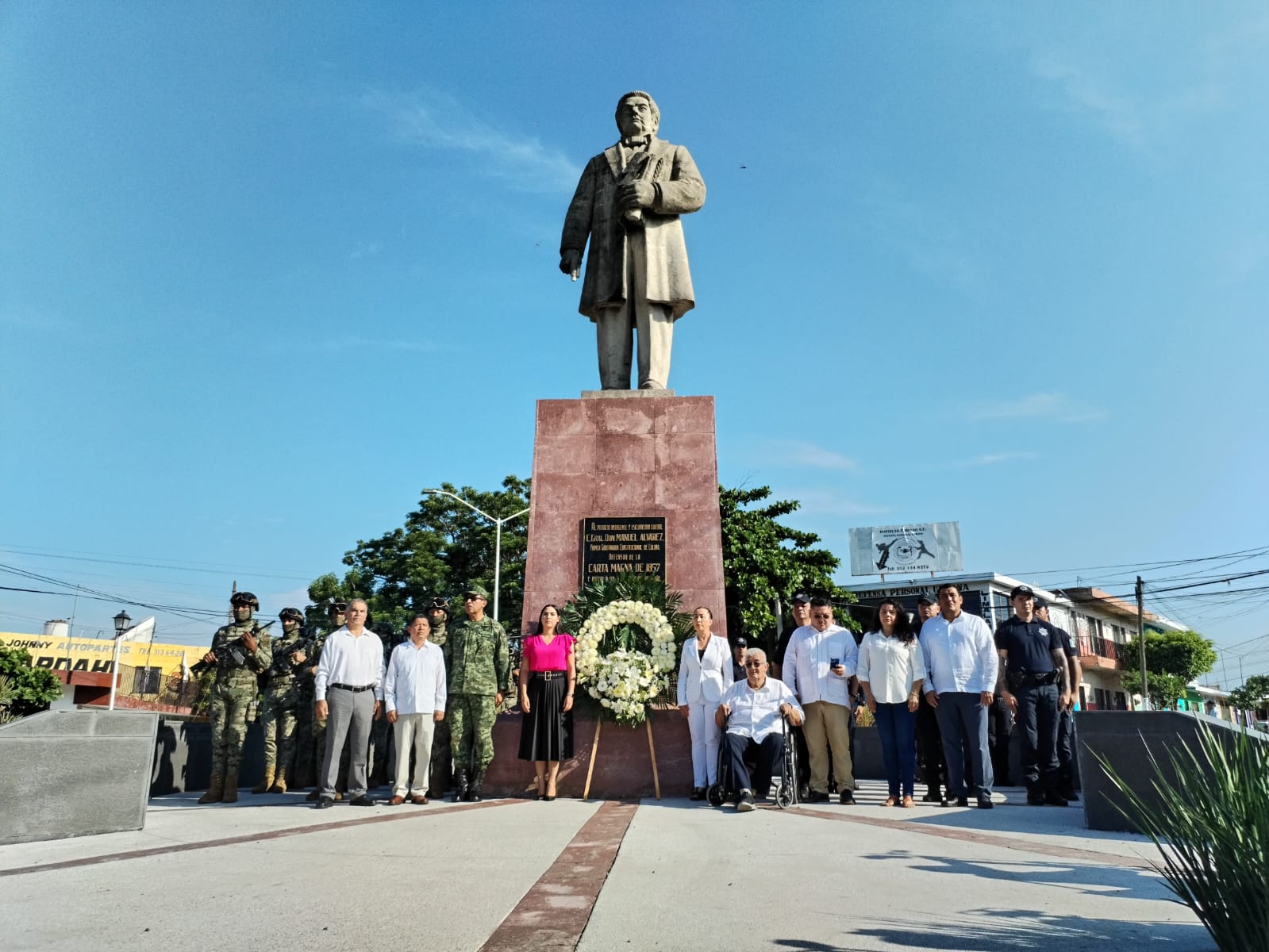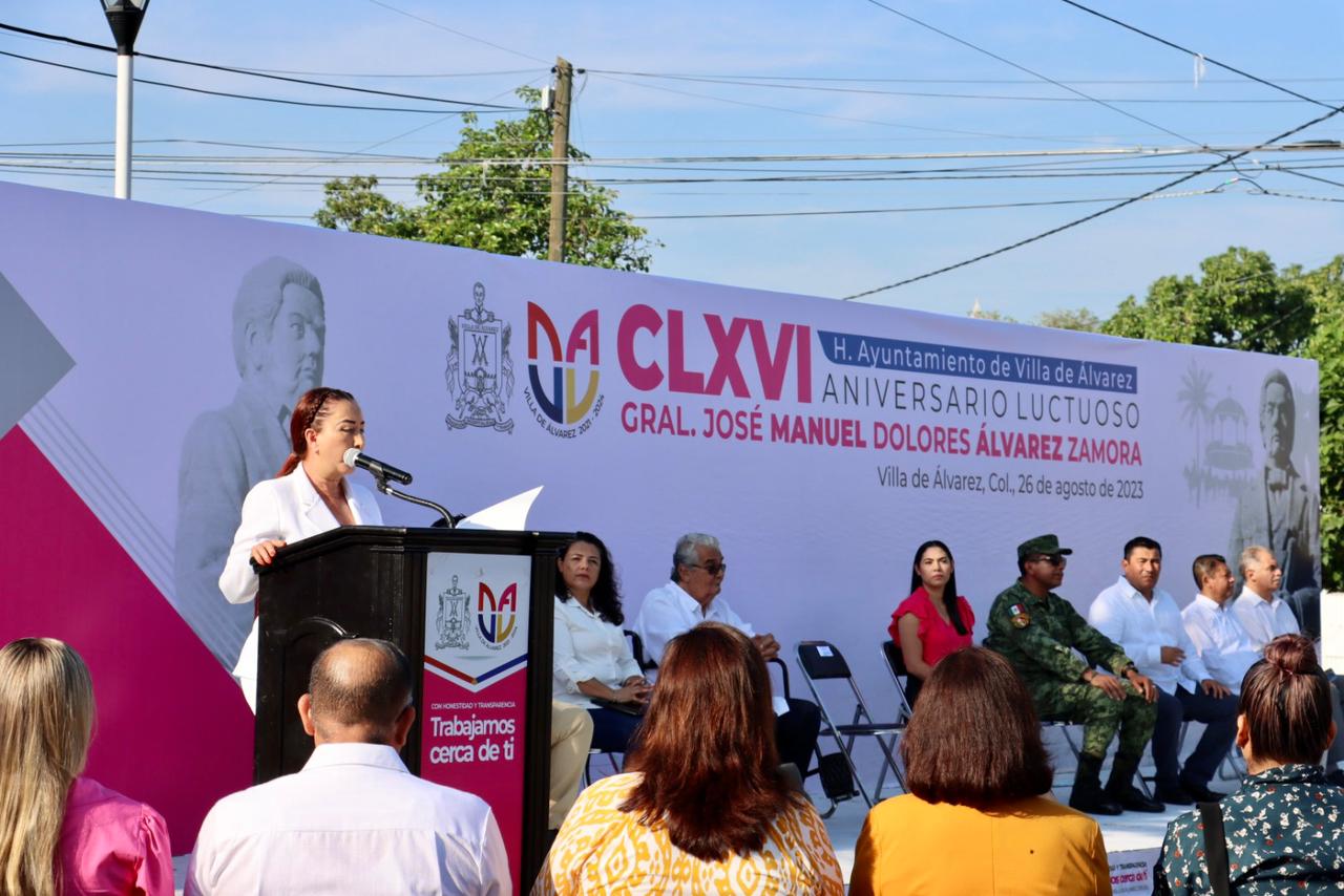 La Gobernadora Indira Vizcaíno recordó que el General Manuel Álvarez murió en la esquina de las calles Madero y Venustiano Carranza del Centro de Colima, cuando el 26 de agosto de 1857 acudió a atender una manifestación y recibió un disparo de un arma de fuego.