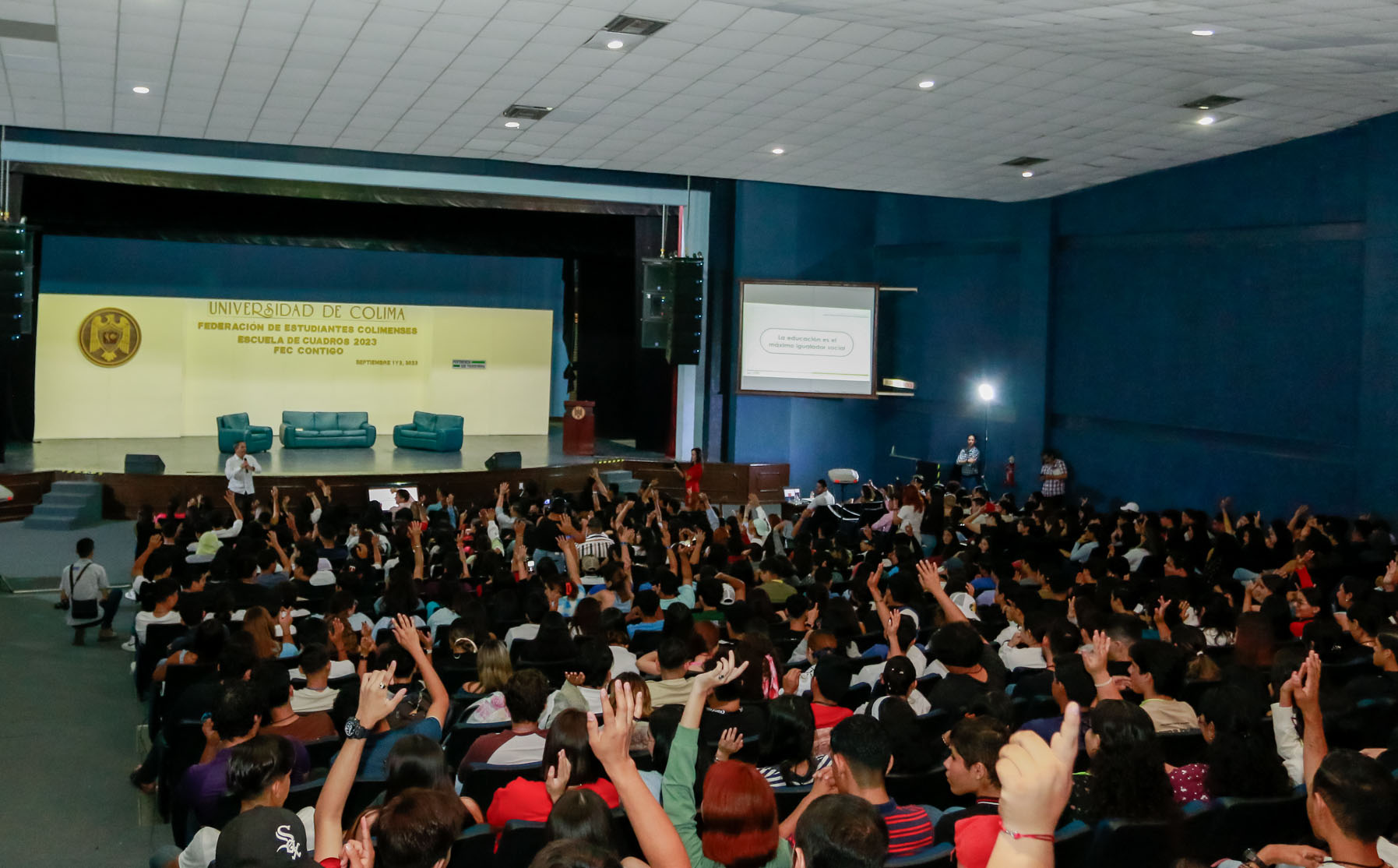 Este viernes, Christian Jorge Torres Ortiz Zermeño, rector de la Universidad de Colima, compartió varias ideas y consejos con los estudiantes que aspiran a convertirse en líderes estudiantiles en sus planteles de bachillerato y licenciatura. Su charla, titulada “El poder de una mente positiva”, dio inicio a las actividades de la Escuela de Cuadros de la Federación de Estudiantes Colimenses (FEC), un evento que reunió a más de mil cien estudiantes de todos los niveles, tanto presencial como virtualmente.