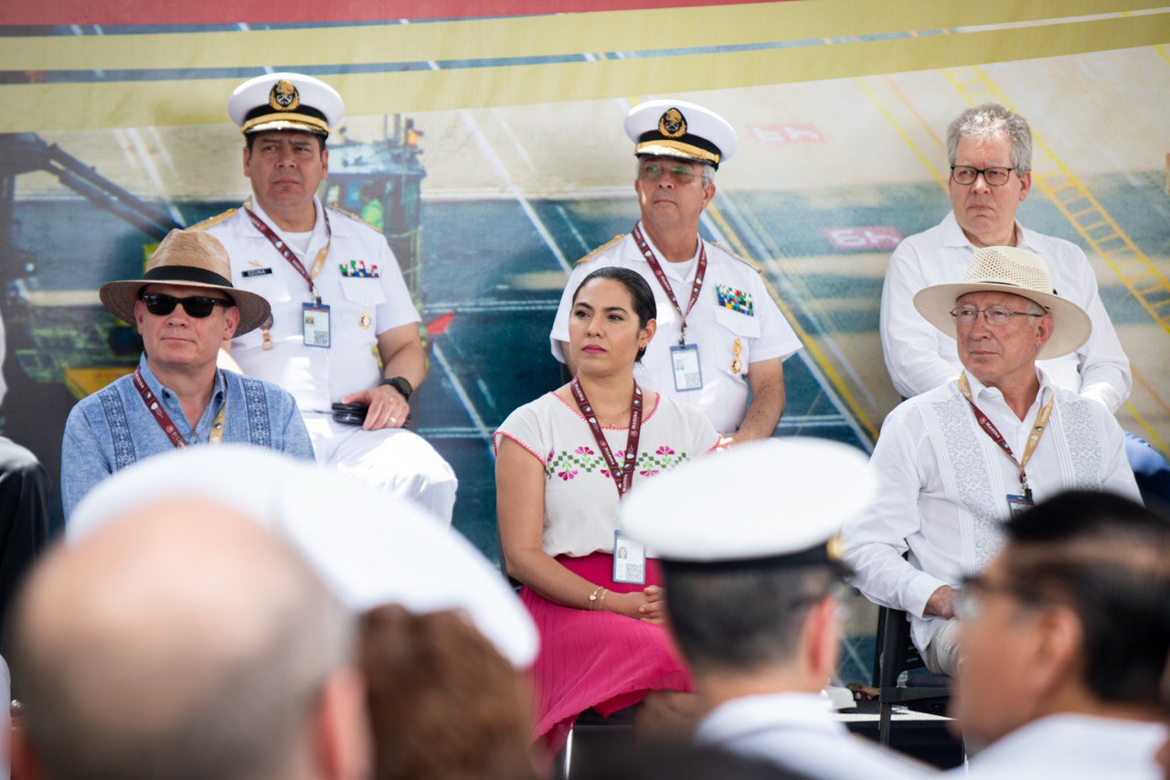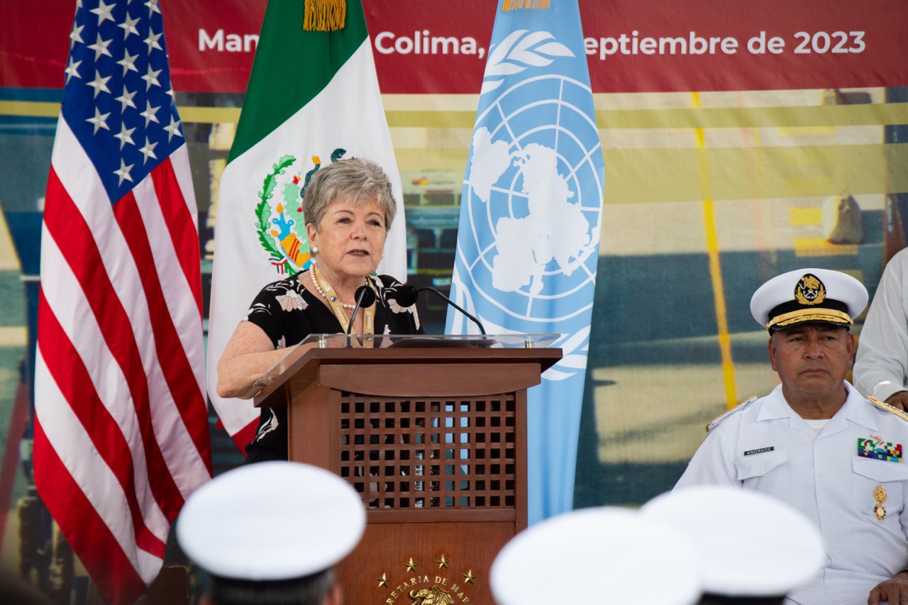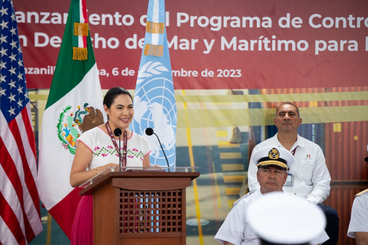 La gobernadora del estado de Colima, Indira Vizcaíno Silva, atestiguó en Manzanillo el lanzamiento del Programa de Control de Contenedores y clausura del Diplomado en Derecho del Mar y Marítimo para la Impartición y Administración de Justicia, que encabezó el secretario de Marina (Semar) del Gobierno de México, almirante José Rafael Ojeda Durán, en presencia de la secretaria de Relaciones Exteriores (SRE), Alicia Bárcena Ibarra, el embajador de Estados Unidos de América en México, Ken Salazar y Kristian Hölge, representante en México de la Oficina de las Naciones Unidas contra la Droga y el Delito.