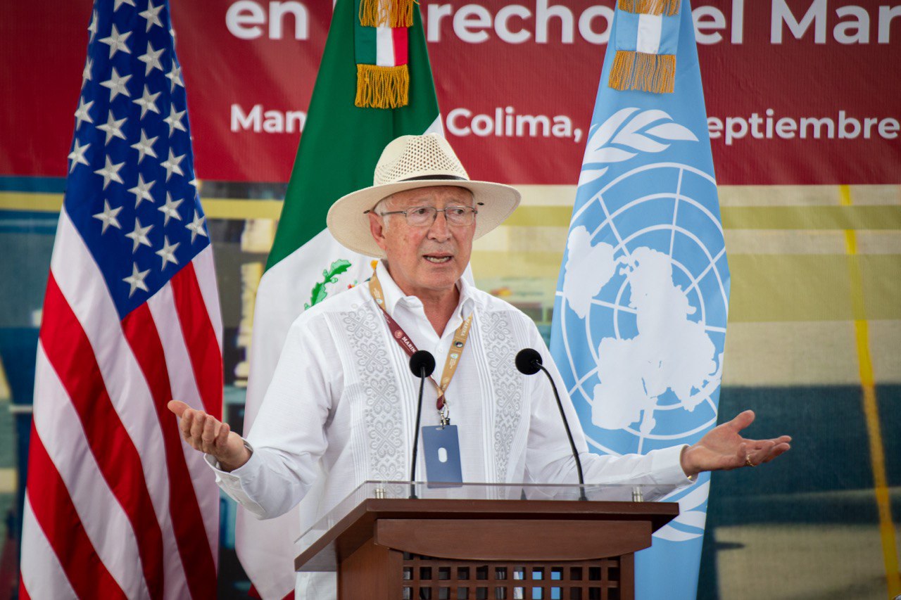 El embajador Ken Salazar destacó que el puerto de Manzanillo es la puerta del comercio hacia México y Estados Unidos, por lo que consideró que el proyecto impulsado este día es un comienzo, además de que es un ejemplo de que ambos países están trabajando de la mano, en contraste con quienes dicen lo contrario; “y no nomás aquí en Manzanillo, lo estamos haciendo por todo México y en los Estados Unidos”.