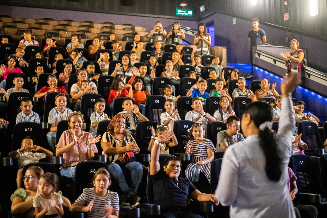 Desde las instalaciones de Cinepolis que se ubica en la Plaza Punto Bahía, y acompañada, por la directora de Participación, Jazmín García Farías, el director de Protección Civil y Bomberos, Juan Francisco Quiles y el gerente de Cinepolis Punto Bahía, Gerardo Luna; la alcaldesa, agradeció a dicha empresa por las facilidades otorgadas, “porque son niñas y niños que nunca habían ido al cine, no conocían un cine, esta es su primera vez”.