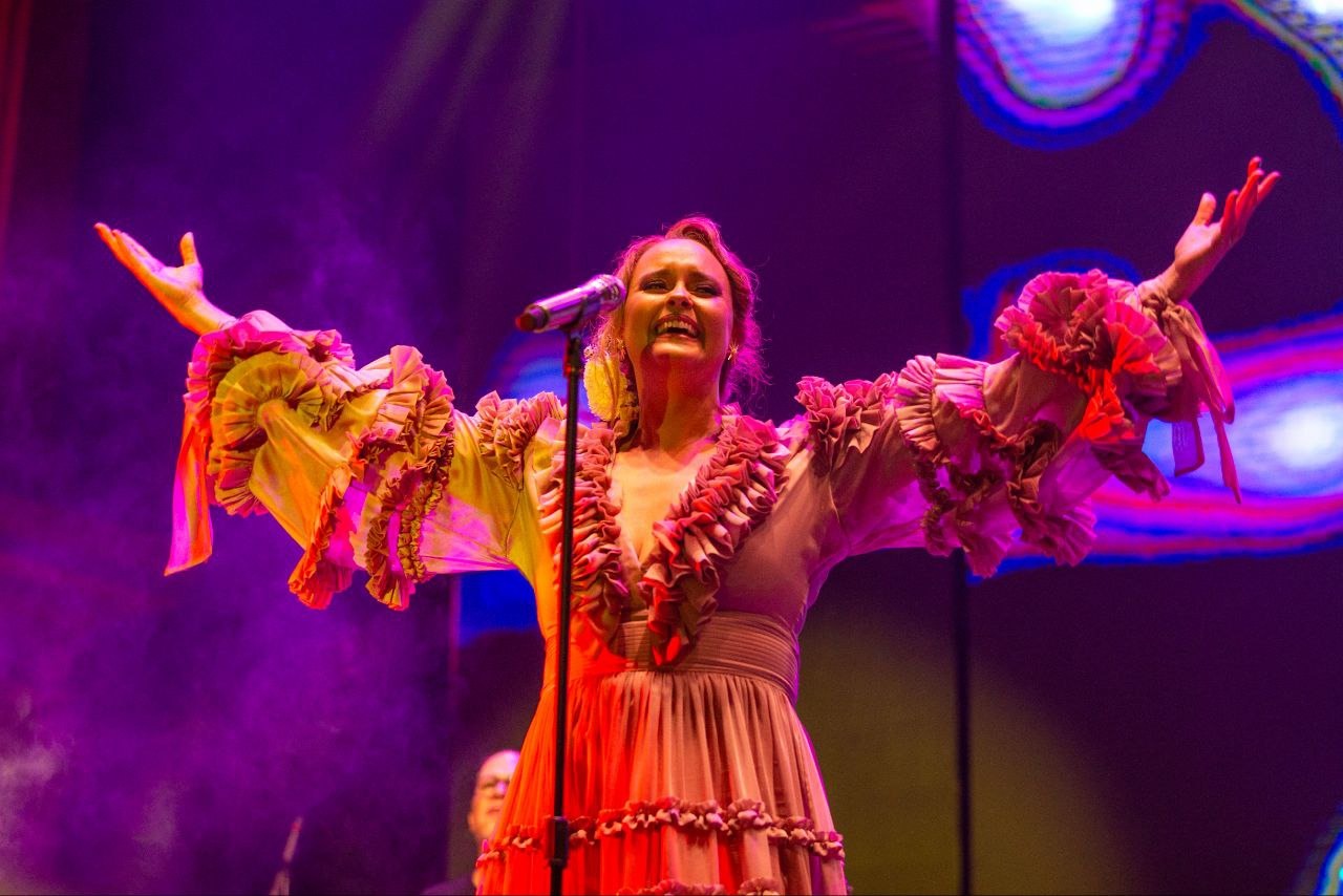 Luego del protocolo oficial, la pirotecnia y quema del castillo, la cantante española salió al escenario y entonó al unísono con miles de asistentes canciones como Tu cárcel, Tatuajes, Tanto amor, Perdóname, Amorcito corazón, La gata bajo la lluvia, Ya te olvidé, Como tu mujer, México lindo y querido, Viva México, La media vuelta, Si nos dejan, Camino de Guanajuato, Fue un placer conocerte, Se me olvidó otra vez, Volver volver, De qué manera te olvido, Dos coronas a mi madre, Costumbres, Amor eterno, entre otras más.