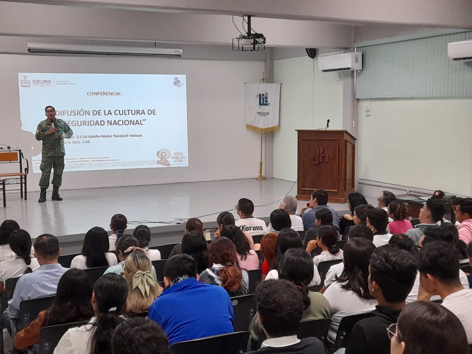 Acompañado de las autoridades educativas, en el auditorio “Jesús Amezcua Pizano” de esta casa de estudios, el Comandante de la 20/a Zona Militar, destacó la importancia de reconocer que la Seguridad Nacional es labor de todas y todos los que estamos inmersos en la sociedad, pues refirió que los objetivos nacionales para consolidar el proyecto de nación, con un Estado fortalecido que garantice la integridad territorial, la independencia, la soberanía, y la estabilidad política, social y económica, solo se logran en la unidad y el reconocimiento de hacer y cumplir con lo que a cada persona nos corresponde con ética y compromiso, por el bien y el desarrollo de la Nación.