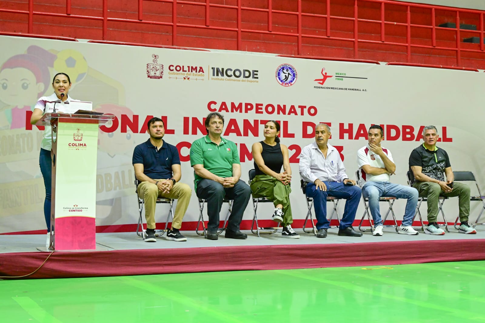 La gobernadora de Colima, Indira Vizcaíno Silva, inauguró la noche de este viernes el Campeonato Nacional Infantil de Handball, que por primera vez se realiza aquí, con 41 equipos de 17 estados del país y cientos de deportistas en ramas femenil y varonil.